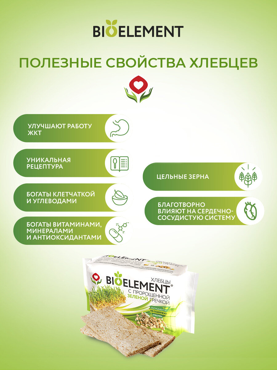 Хлебцы с пророщенной Зеленой Гречкой, 65г Доктор Граин, без муки информация: