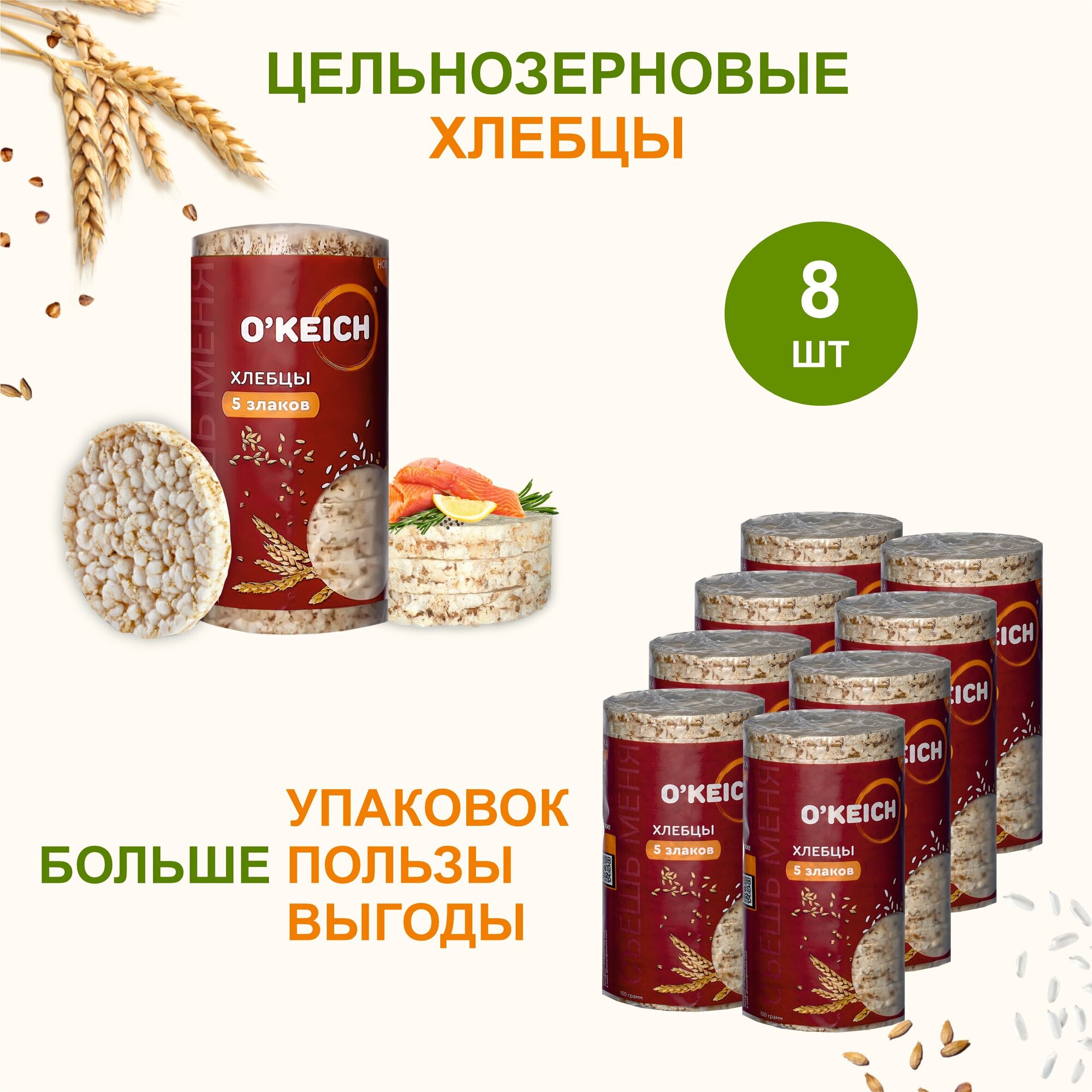 Хлебцы "5 злаков", 8 штук по 100 грамм информация: