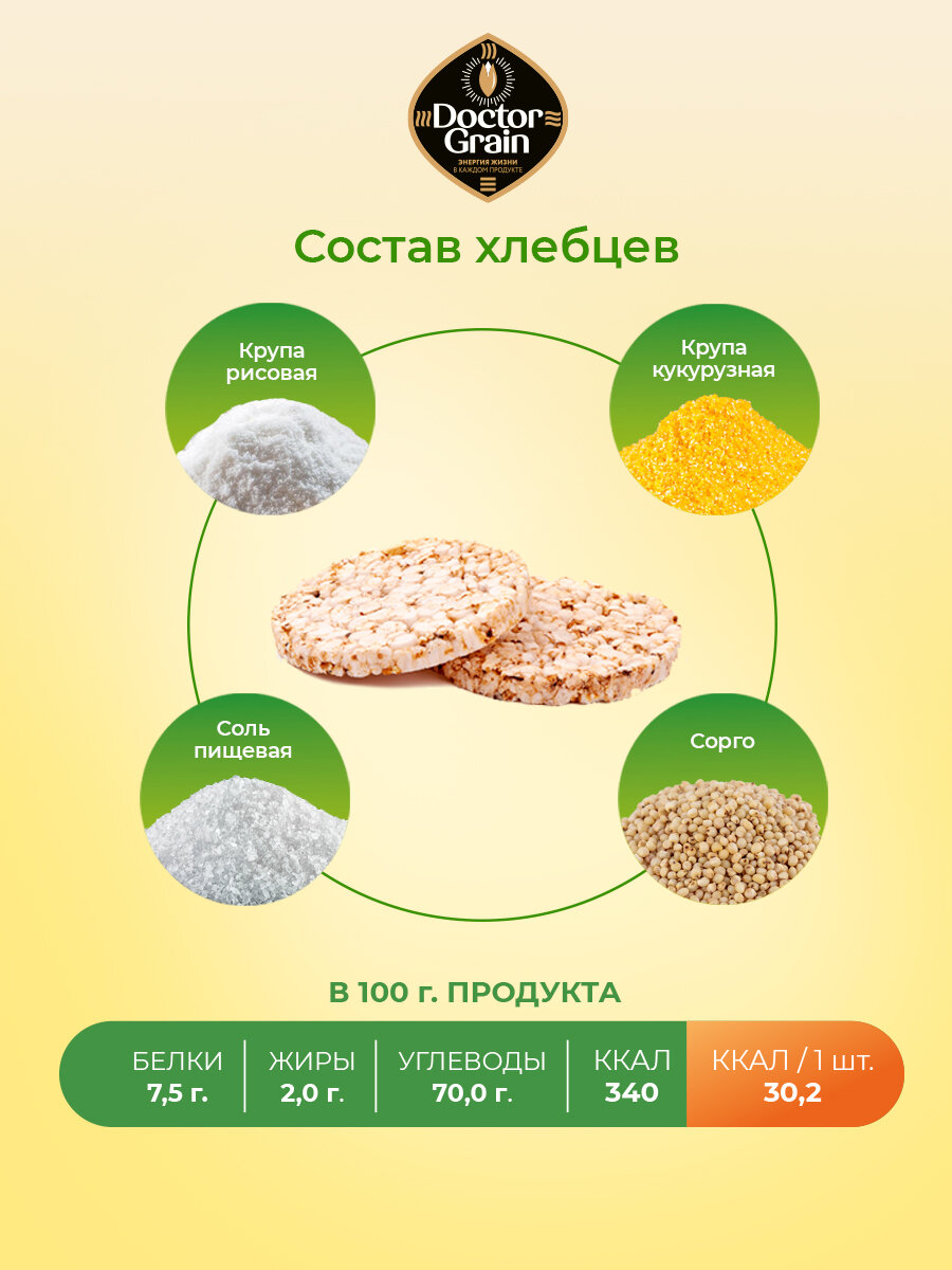 10 цен на Хлебцы Зерновой микс рис-кукуруза-сорго Доктор Граин, 80г здоровый перекус
