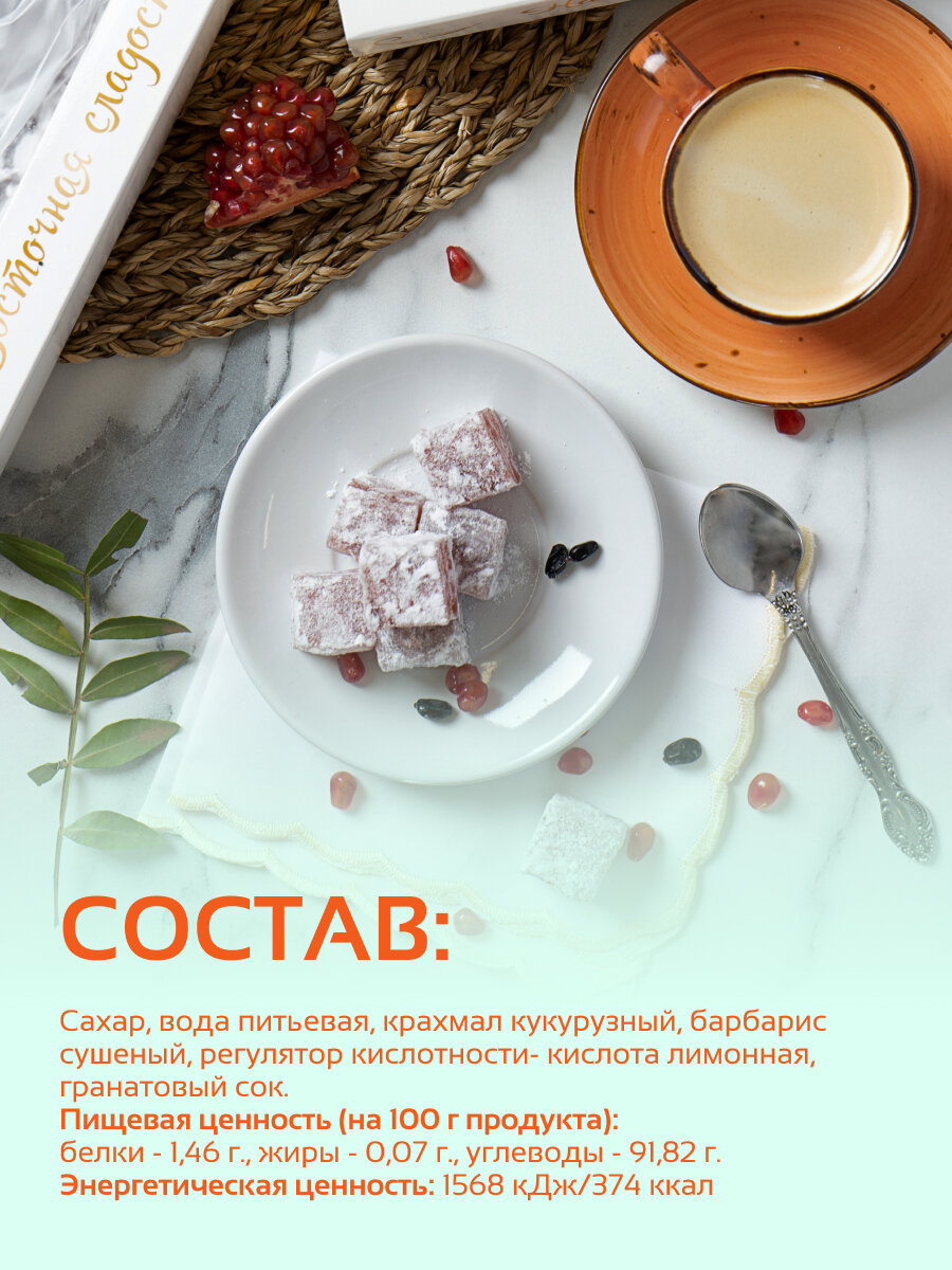 Рахат лукум "HAYALI" с барбарисом и гранатом, 300 г информация: