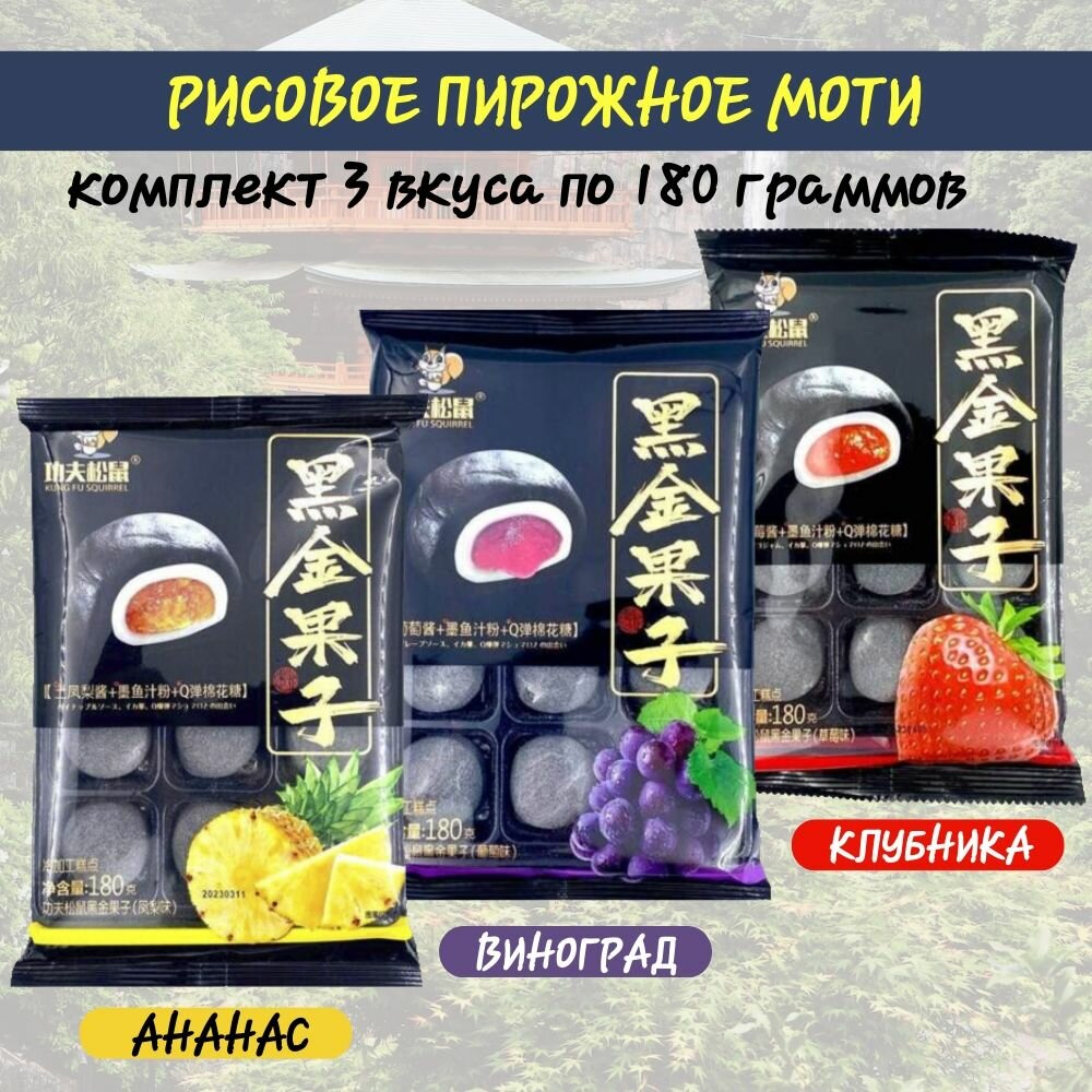 10 цен на Моти черные Kungfu Squirrel со вкусом винограда, ананаса, клубники, комплект 3 уп по180гр.