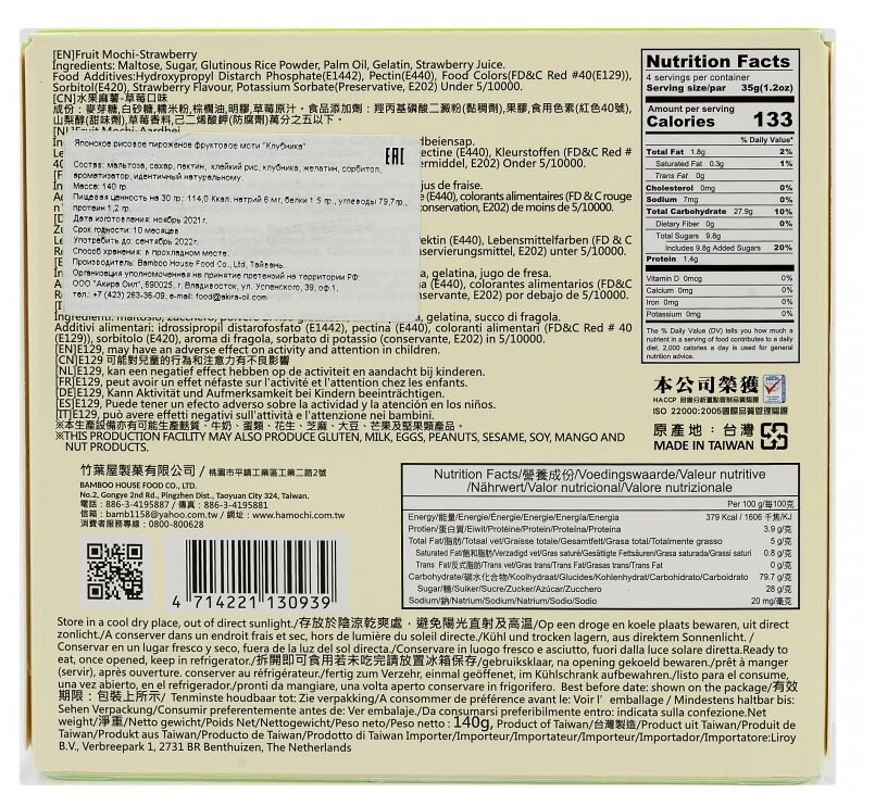 | Состав | мальтоза, сахар, пектин, клейкий рис, клубника, желатин, сорбитол, ароматизатор, идентичный натуральному |
