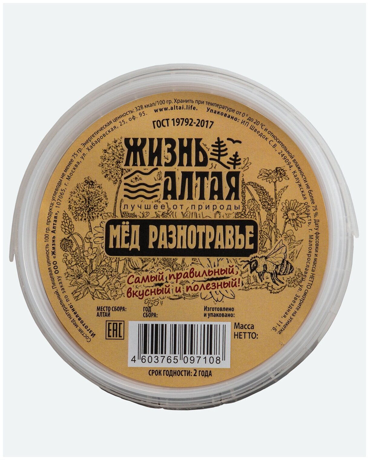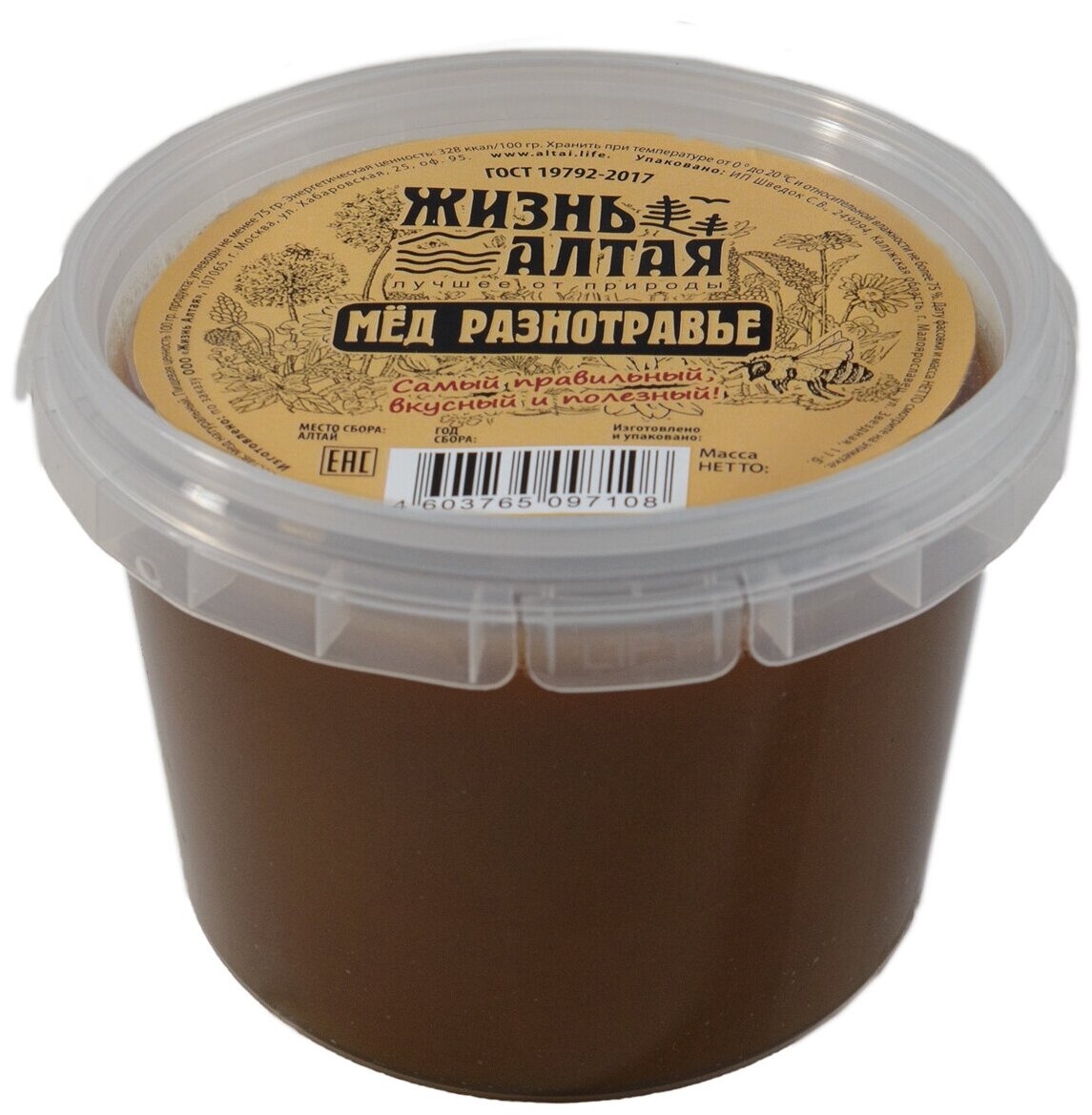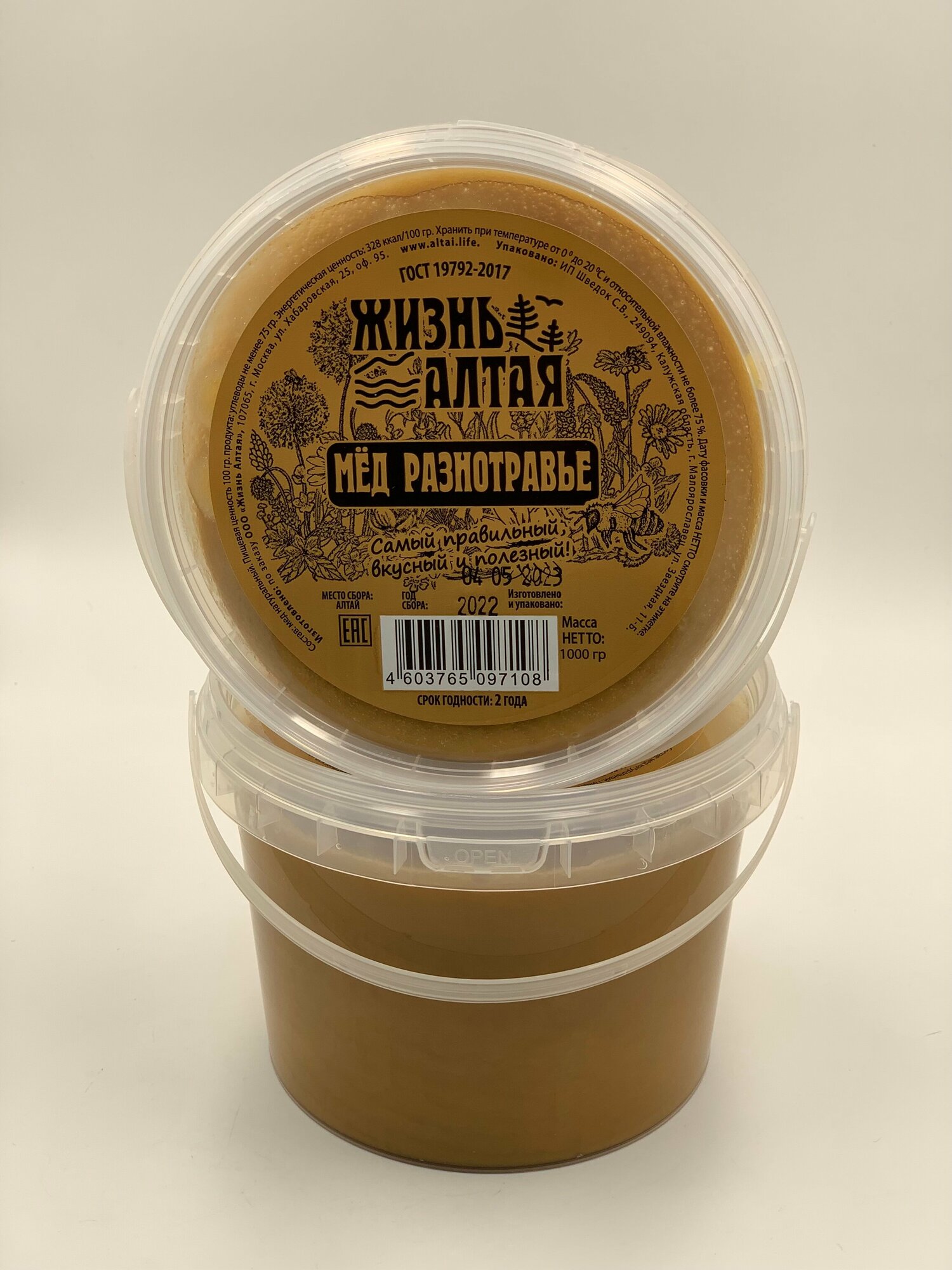 Мёд Натуральный, Разнотравье "Жизнь Алтая" 1000гр. Год сбора:2023г информация: