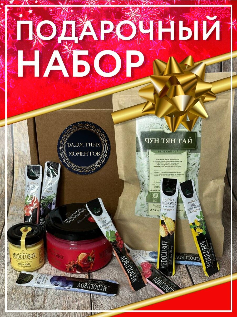 10 цен на Подарочный набор в коробке чай и мед ассорти глинтвейн