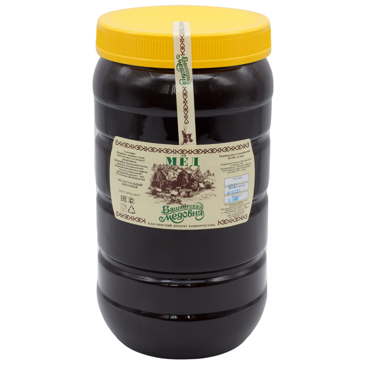 Мёд натуральный Башкирский гречишный "Башкирская медовня" 3000 гр пластик информация:
