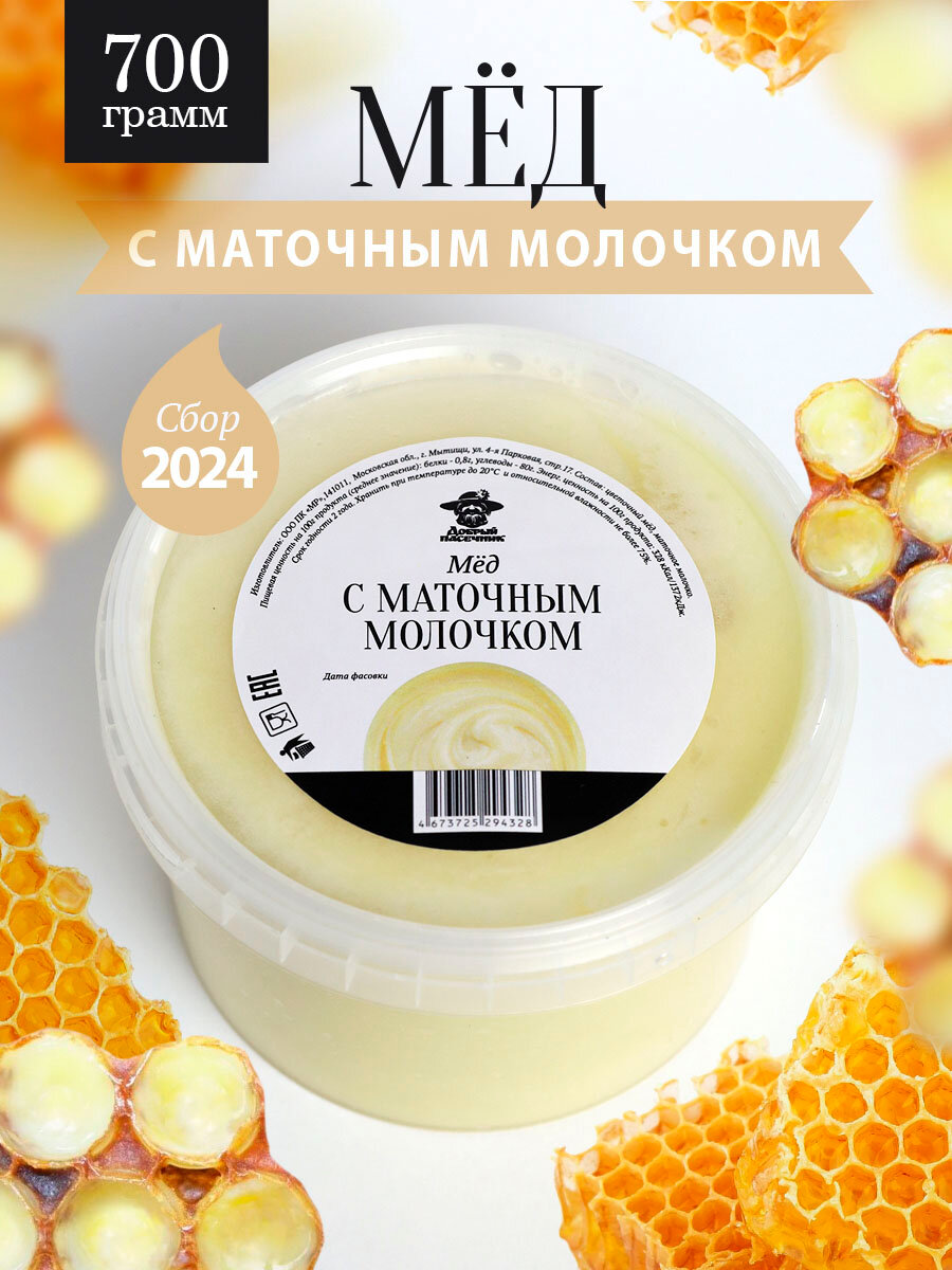 Мед с маточным молочком 700 г, натуральный, с добавками, крем-мед информация:
