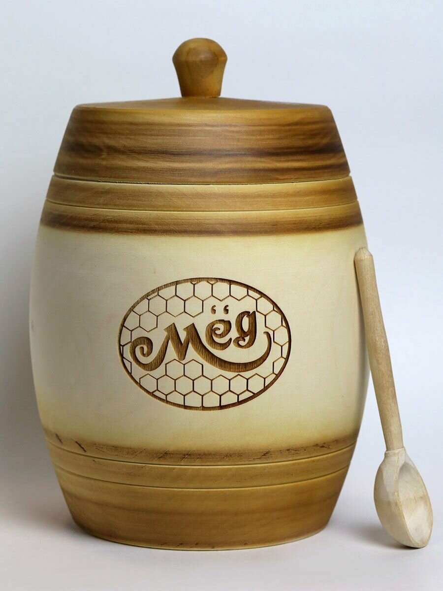 Кипрейный мед 2500 г в бело-коричневом бочонке, В22 информация: