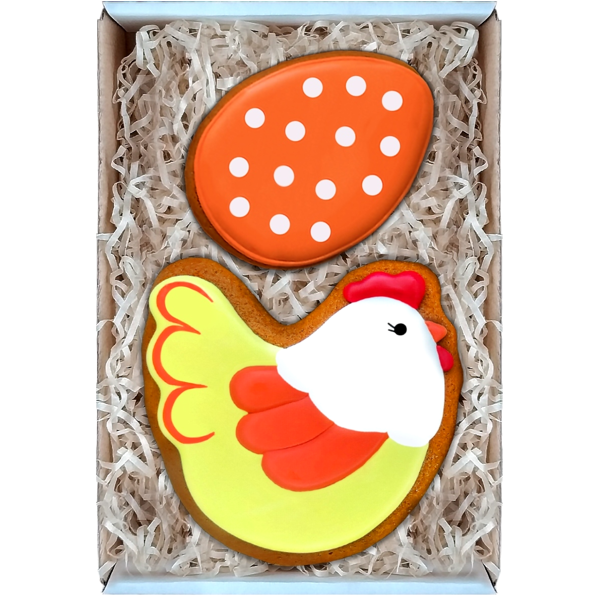 Подарочный набор пасхальных пряников имбирных ручной работы в подарок на Пасху детям, женщине, мужчине "Курочка и пасхальное яйцо" 18х12 см информация: