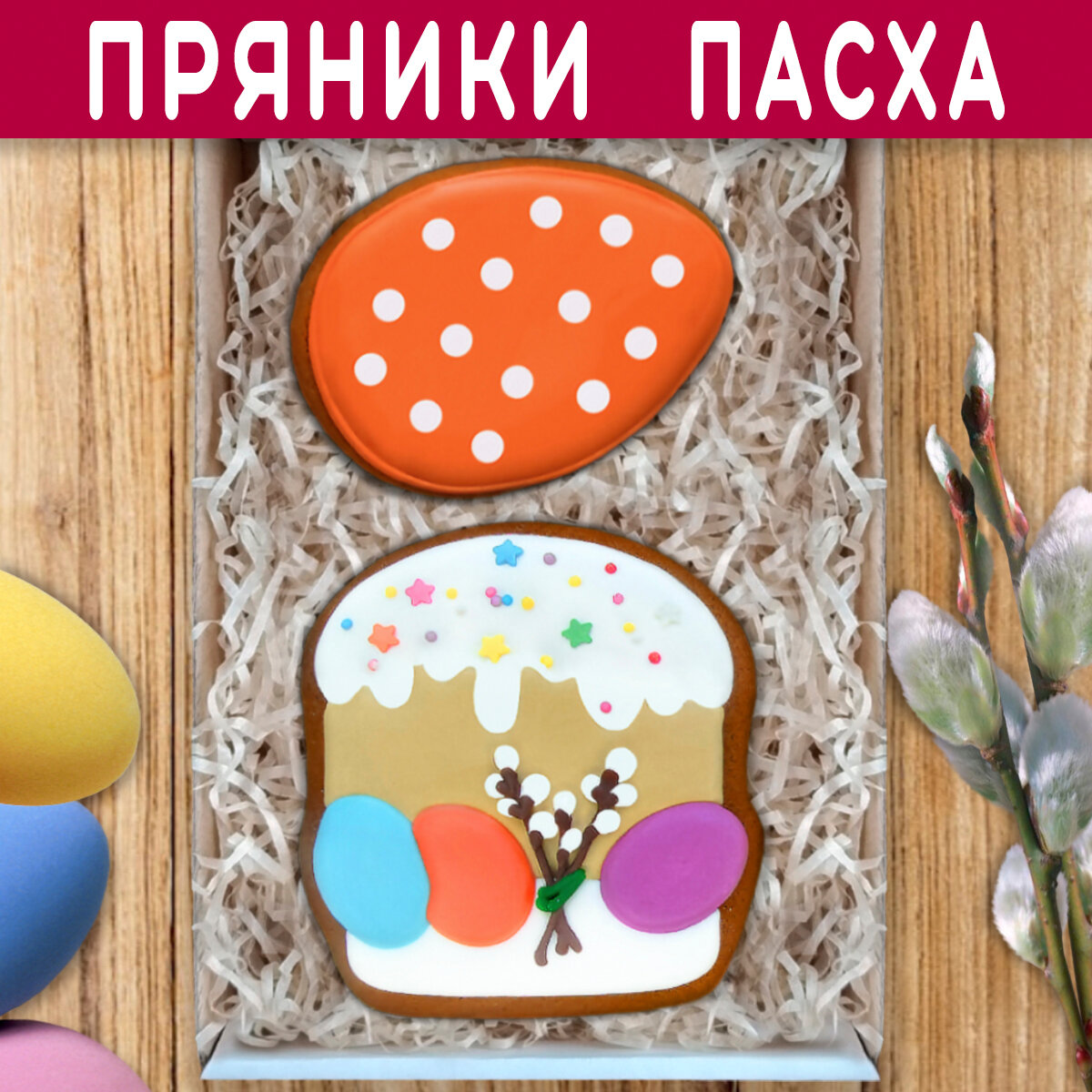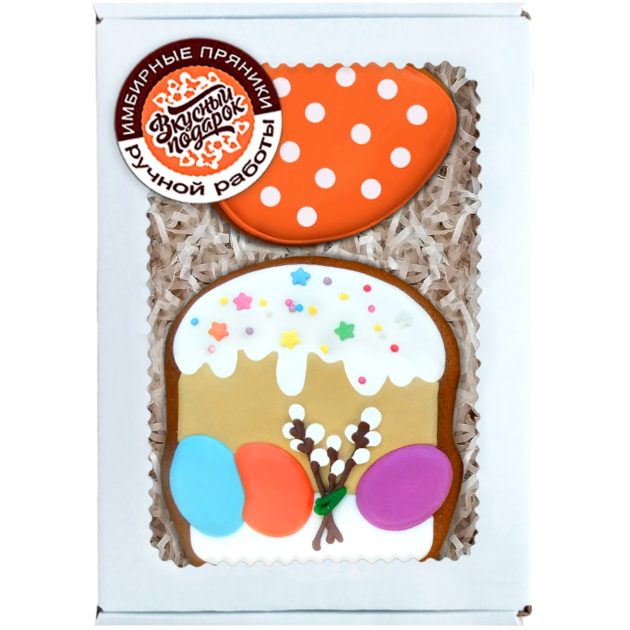 Отзывы на Подарочный набор пасхальных пряников имбирных ручной работы в подарок на Пасху детям, женщине, мужчине "Кулич и пасхальное яйцо оранжевое" 18х12 см
