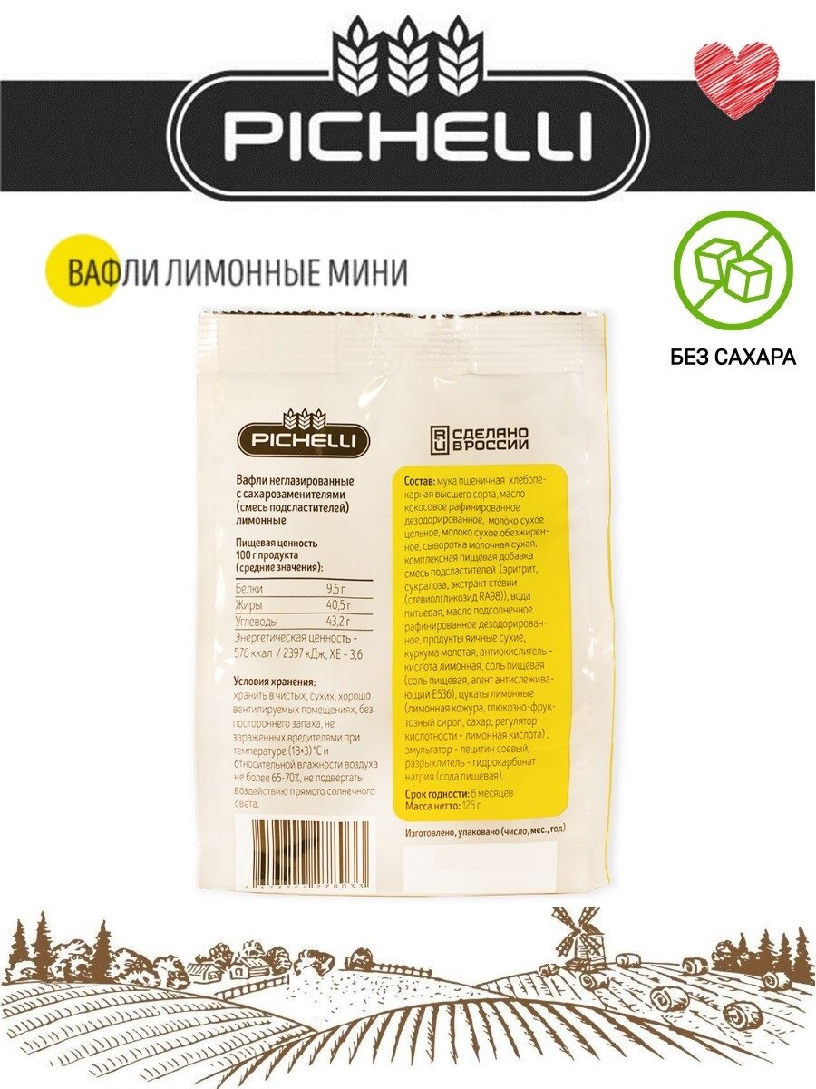 10 цен на PICHELLI, вафли без сахара лимонные мини, 2 шт. * 125 гр.