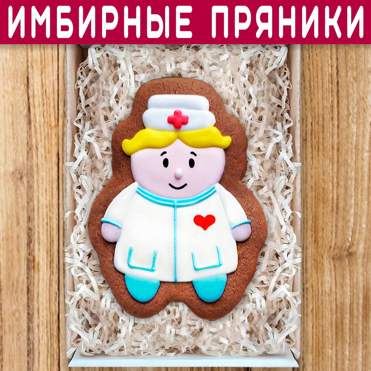 10 цен на Подарочный набор имбирных пряников в подарок врачу женщине мужчине, хирургу неврологу педиатру, медсестре на День Медика или в благодарность 18х12 см