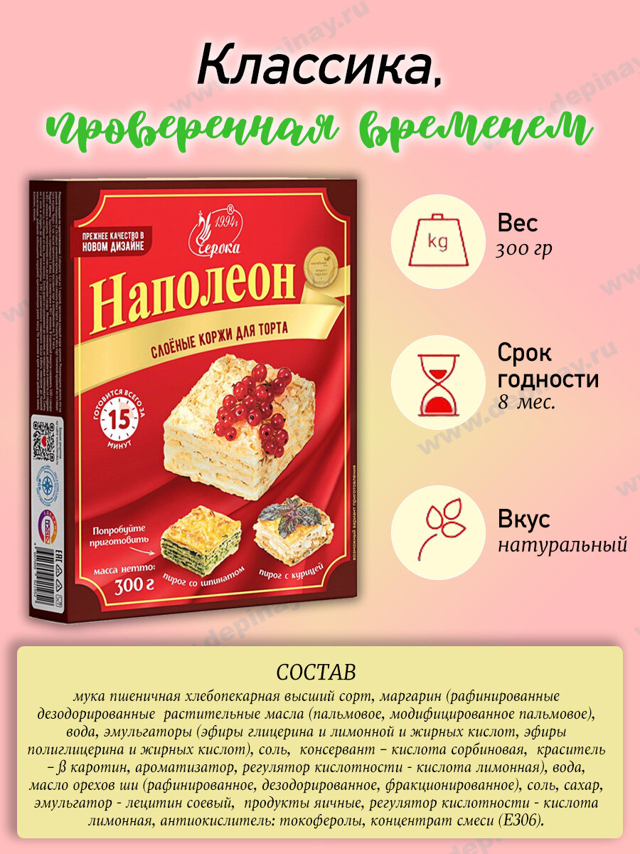 Коржи для торта Черока слоеные Наполеон, 300 г. информация:
