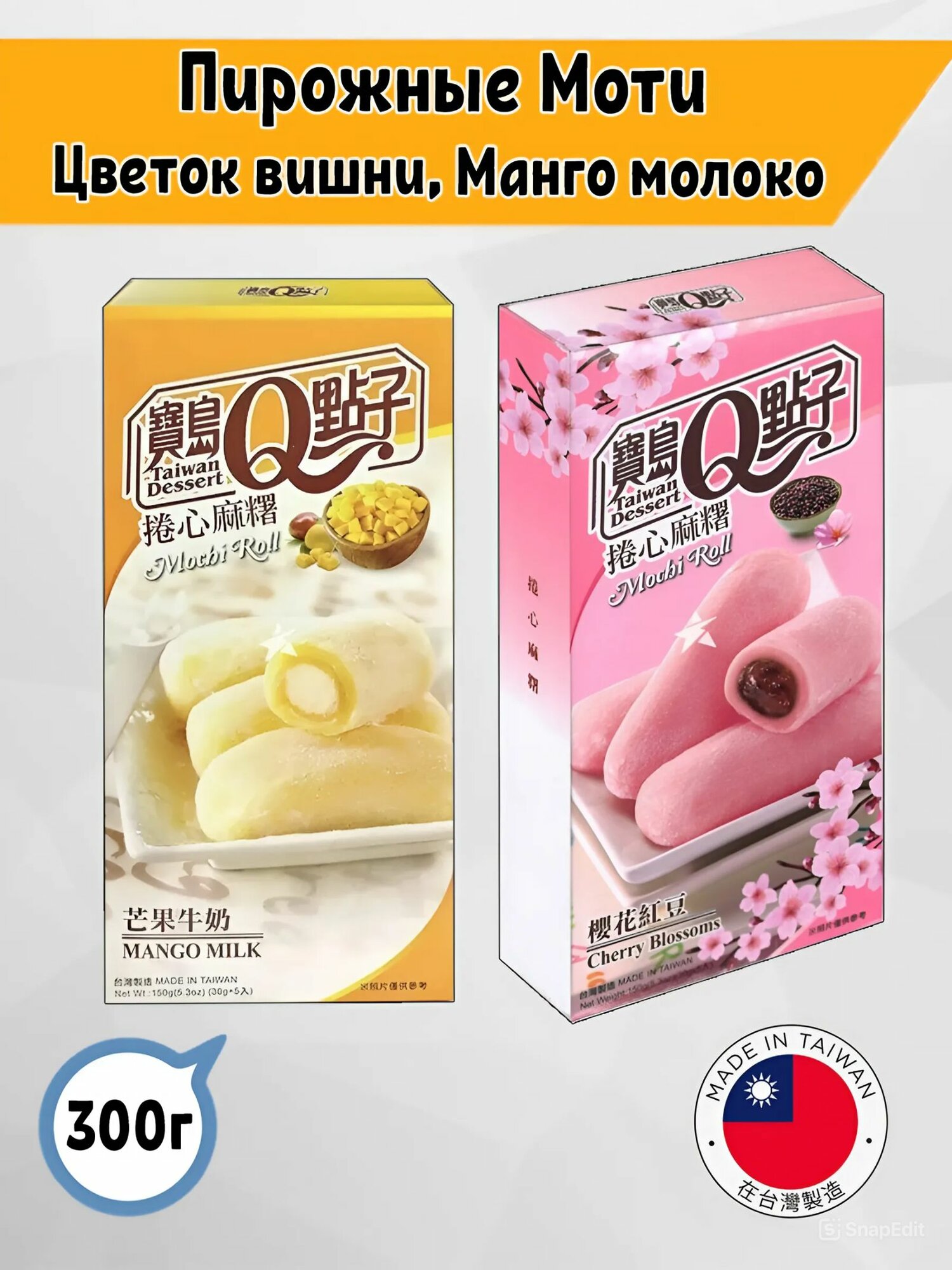 Ассорти Японские Пирожные Какао Моти Красная фасоль с ароматом цветка вишни и Молочный манго, 2 шт. по 150 гр. информация: