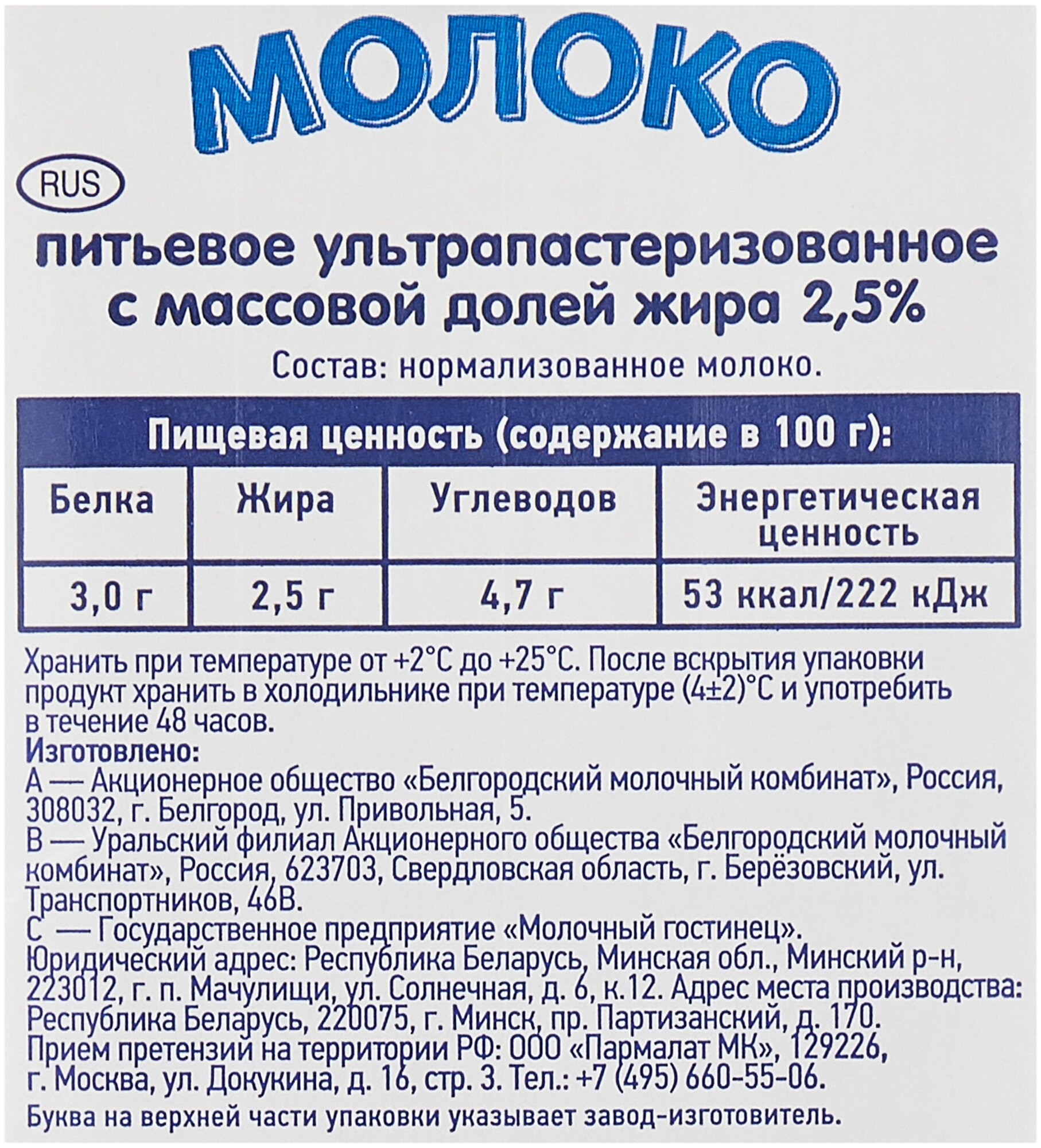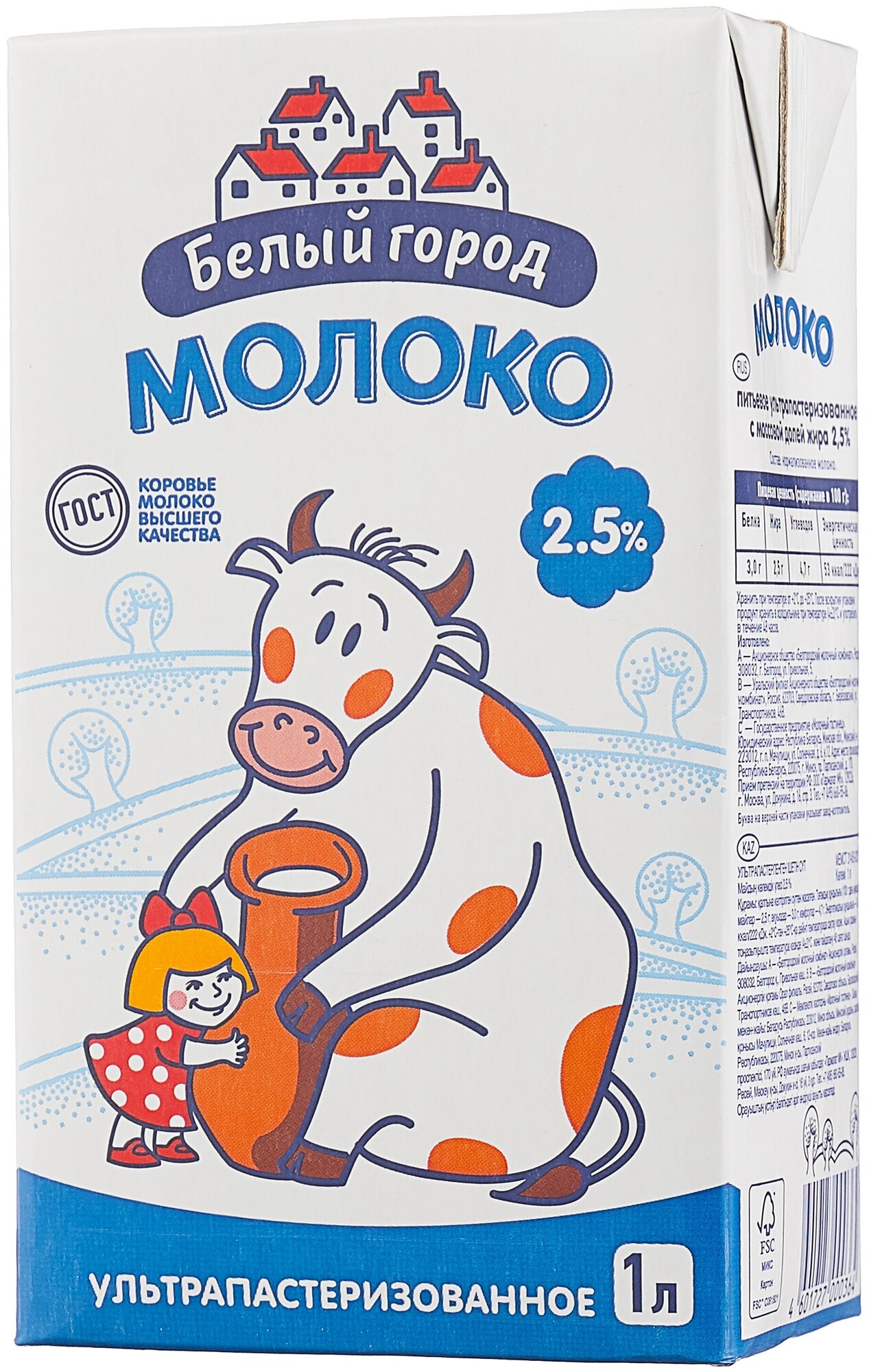 Молоко питьевое ультрапастер. 2,5%"Белый город" 1л 1шт. информация: