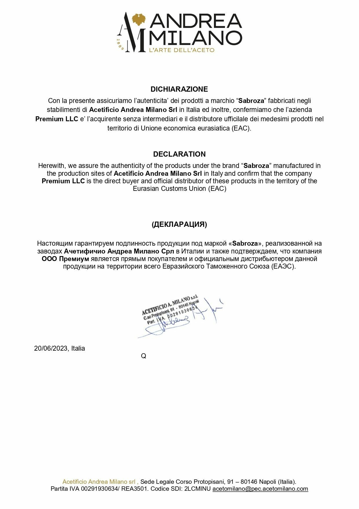 1 литр, Яблочный Уксус Натуральный Нефильтрованный, Непастеризованный, из Италии, Sabroza, c уксусной маткой, ПЭТ бутылка 694 ₽
