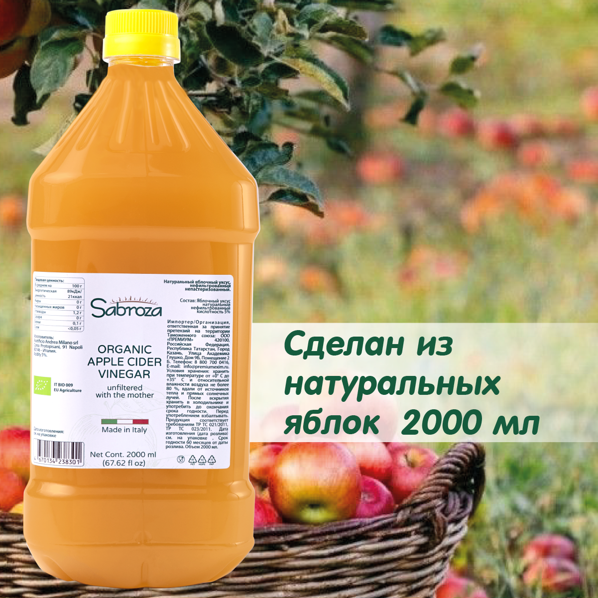 Яблочный Уксус, 1 литр, Натуральный Нефильтрованный и не пастеризованный,Sabroza, Италия, c уксусной маткой, ПЭТ 700 ₽