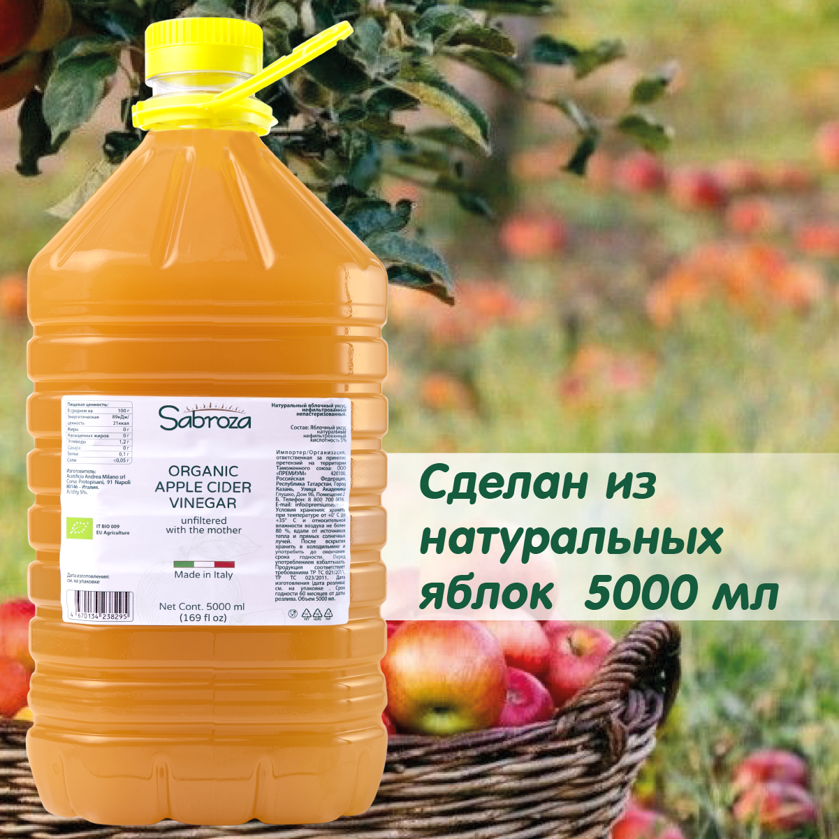 1 литр, Яблочный Уксус Натуральный Нефильтрованный, Непастеризованный, из Италии, Sabroza, c уксусной маткой, ПЭТ бутылка 694 ₽