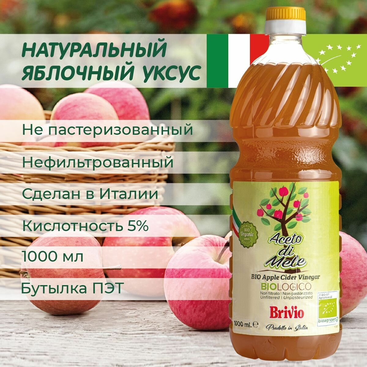 Яблочный уксус Натуральный Нефильтрованный 1000 мл. информация: