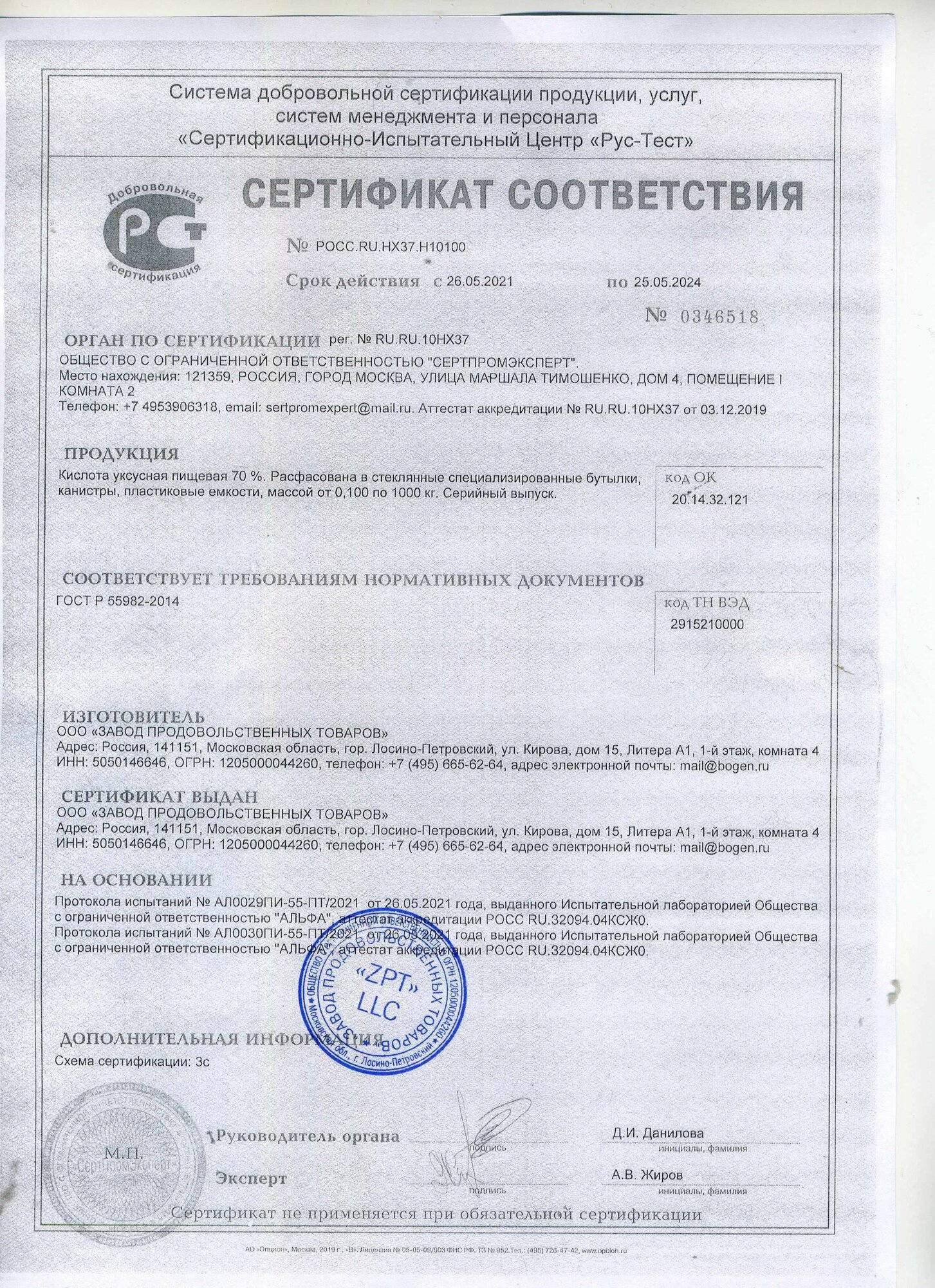 | Состав | Концентрированная уксусная кислота, вода питьевая подготовленная. |