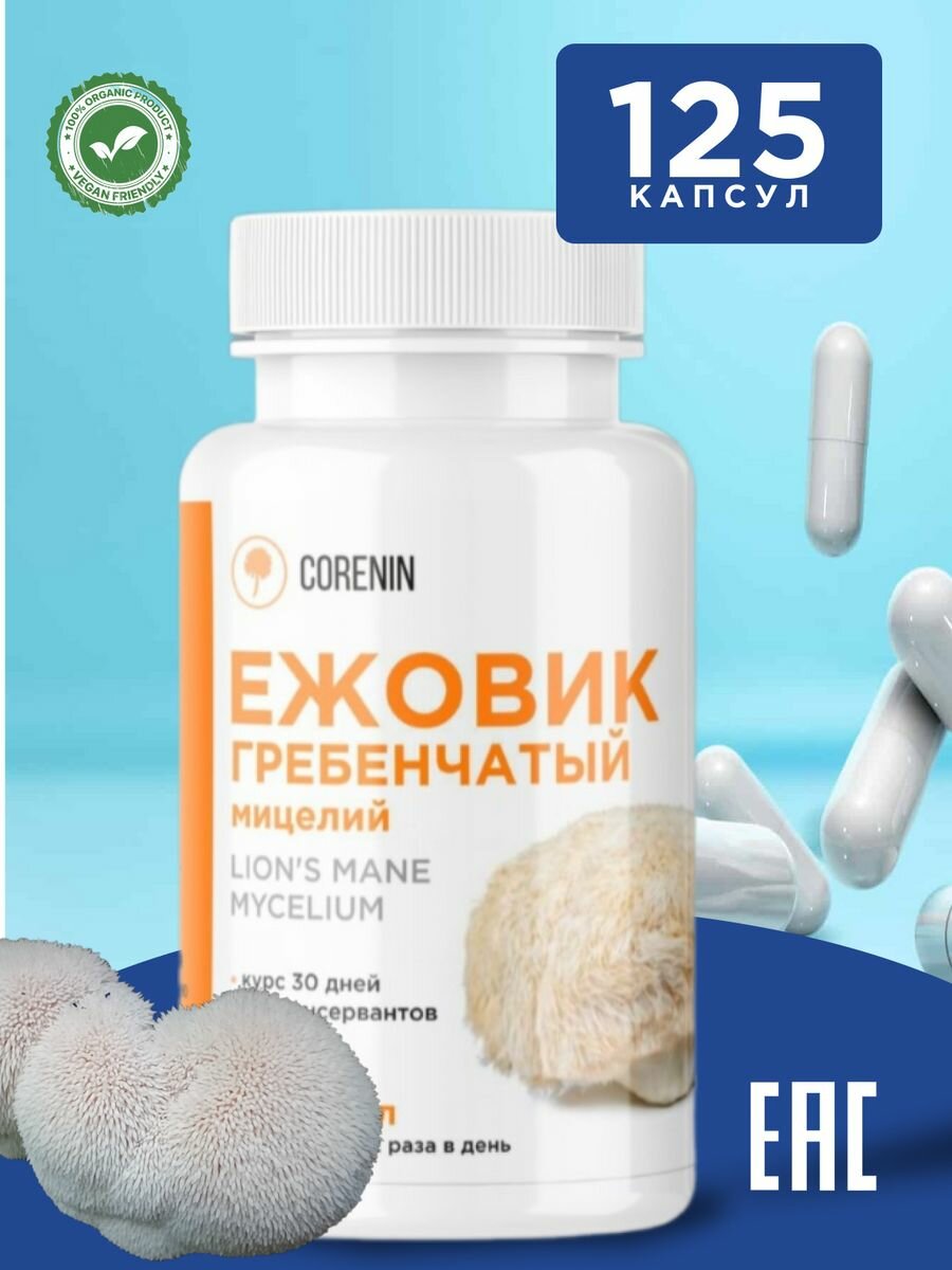 10 цен на Ежовик Гребенчатый мицелий 125 капсул, 1 шт