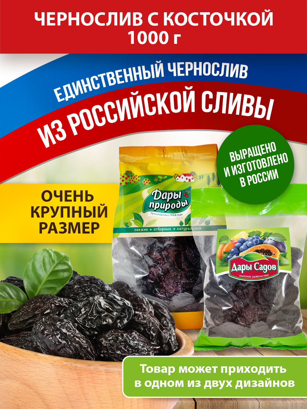 Чернослив Дары Садов крупный сушеный с косточкой , 1000 г информация: