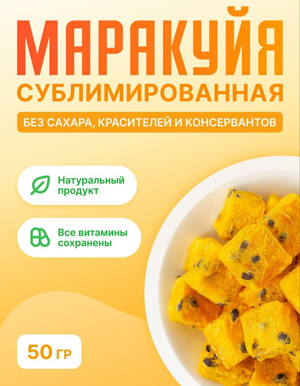 10 цен на Сублимированная маракуйя кубики 10мм, 50 гр