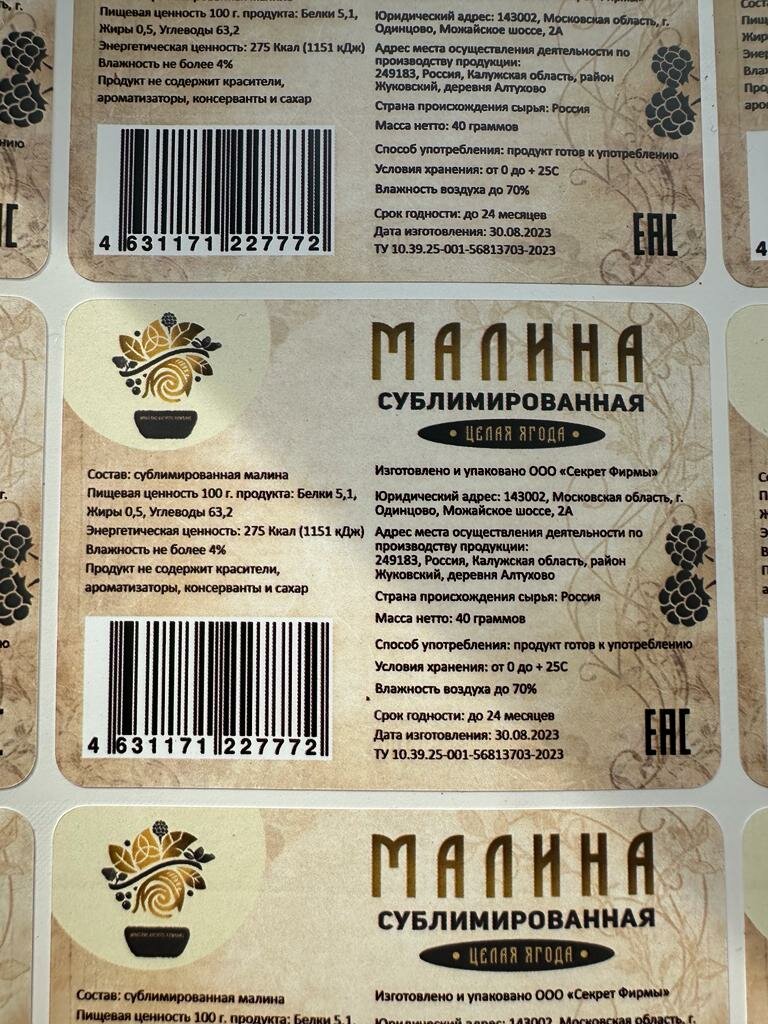 Малина сублимированная целые ягоды информация: