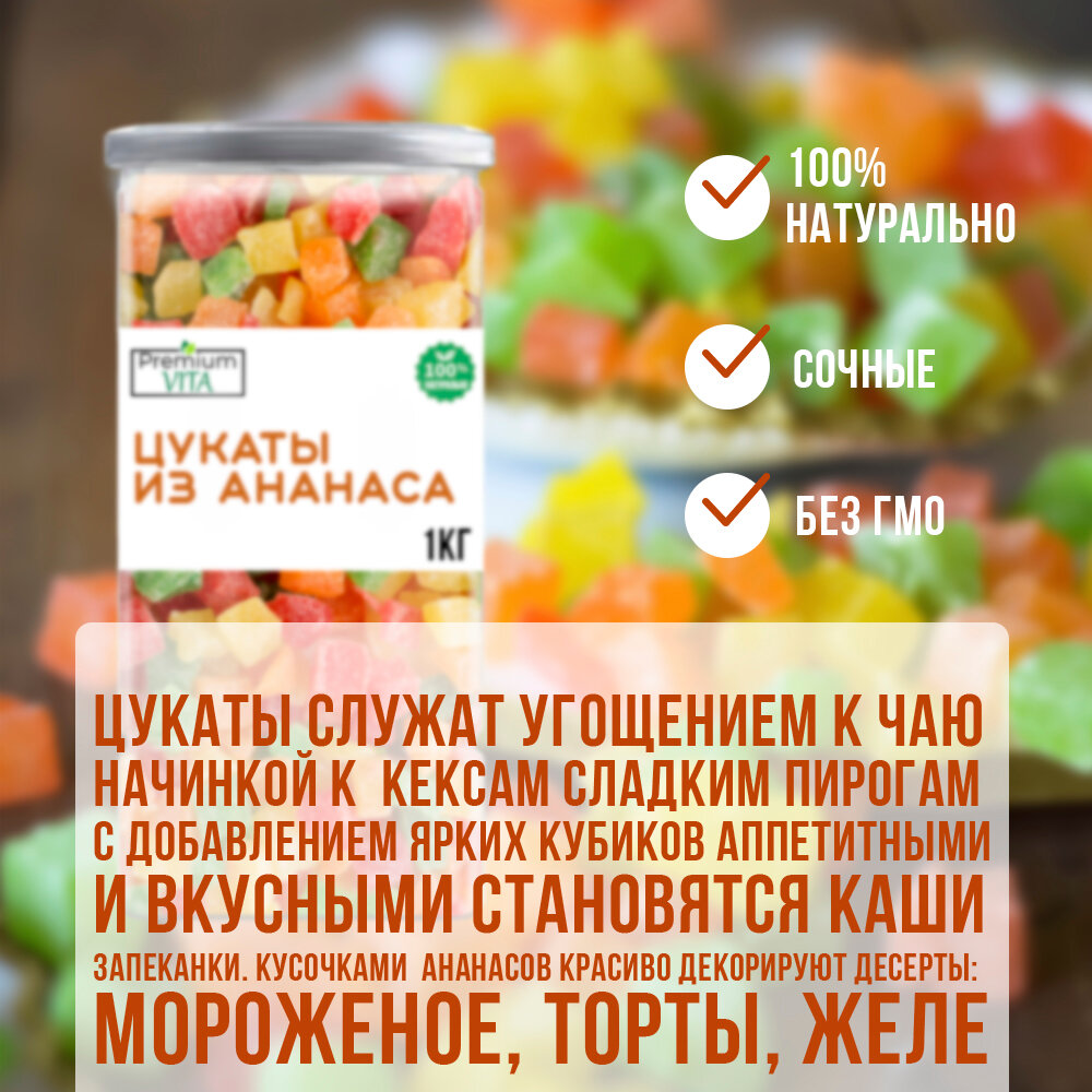 10 цен на Premium VITA Цукаты из ананаса кубики 1 кг