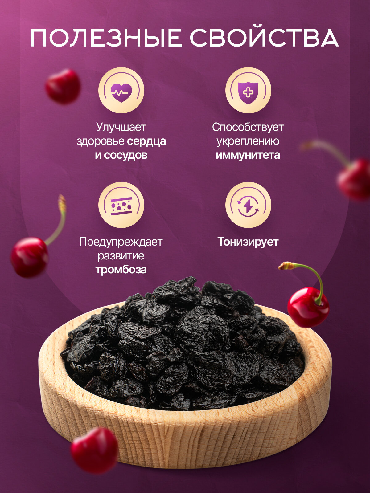 10 цен на Вишня сушеная натуральная без косточки, вяленая ягода 500 гр