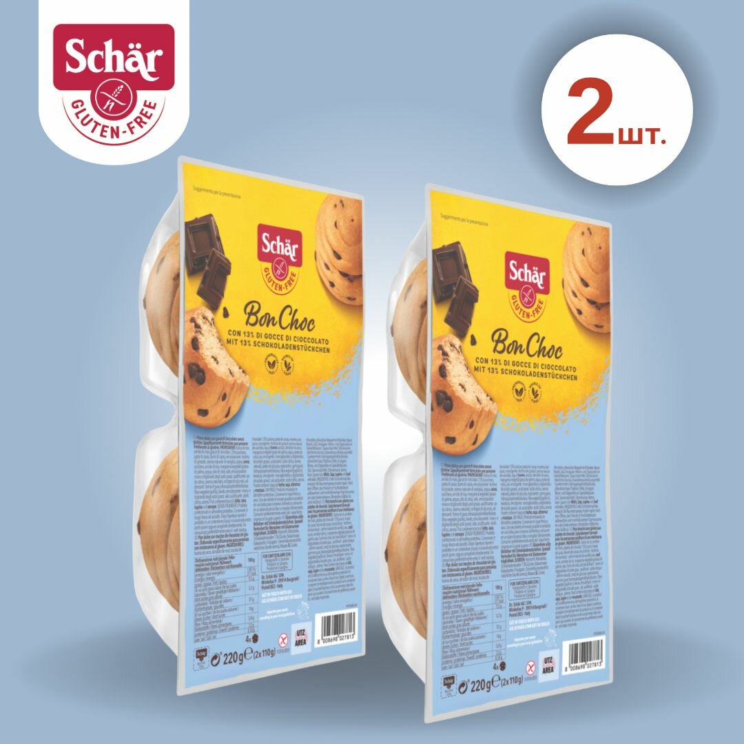 10 цен на Булочки Schar сдобные с кусочками шоколада Bon Choc, без глютена, 2 шт по 220 г