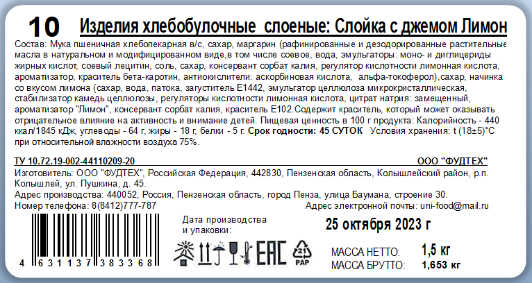 10 цен на Слойка с джемом Лимон 1,5 кг