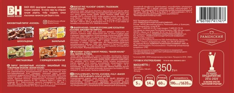 10 цен на Пирог вишневый KUCHEN Baker House 350г