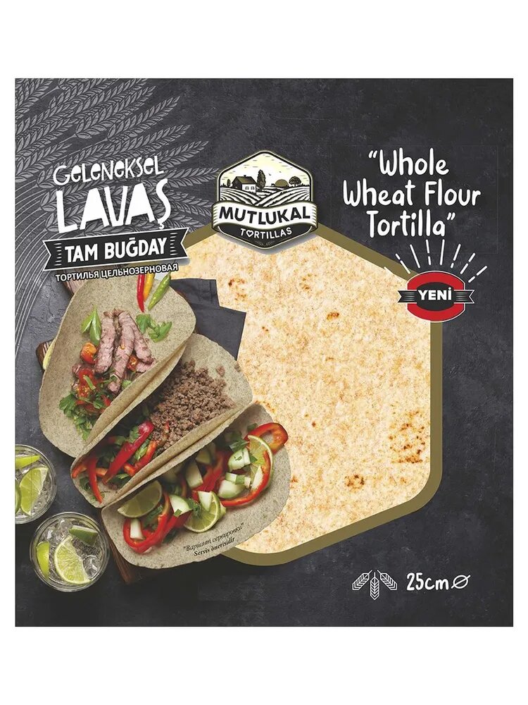 Лепешка тортилья пшеничная цельнозерновая, "Mutlukal", Турция 240г (4х60г) информация: