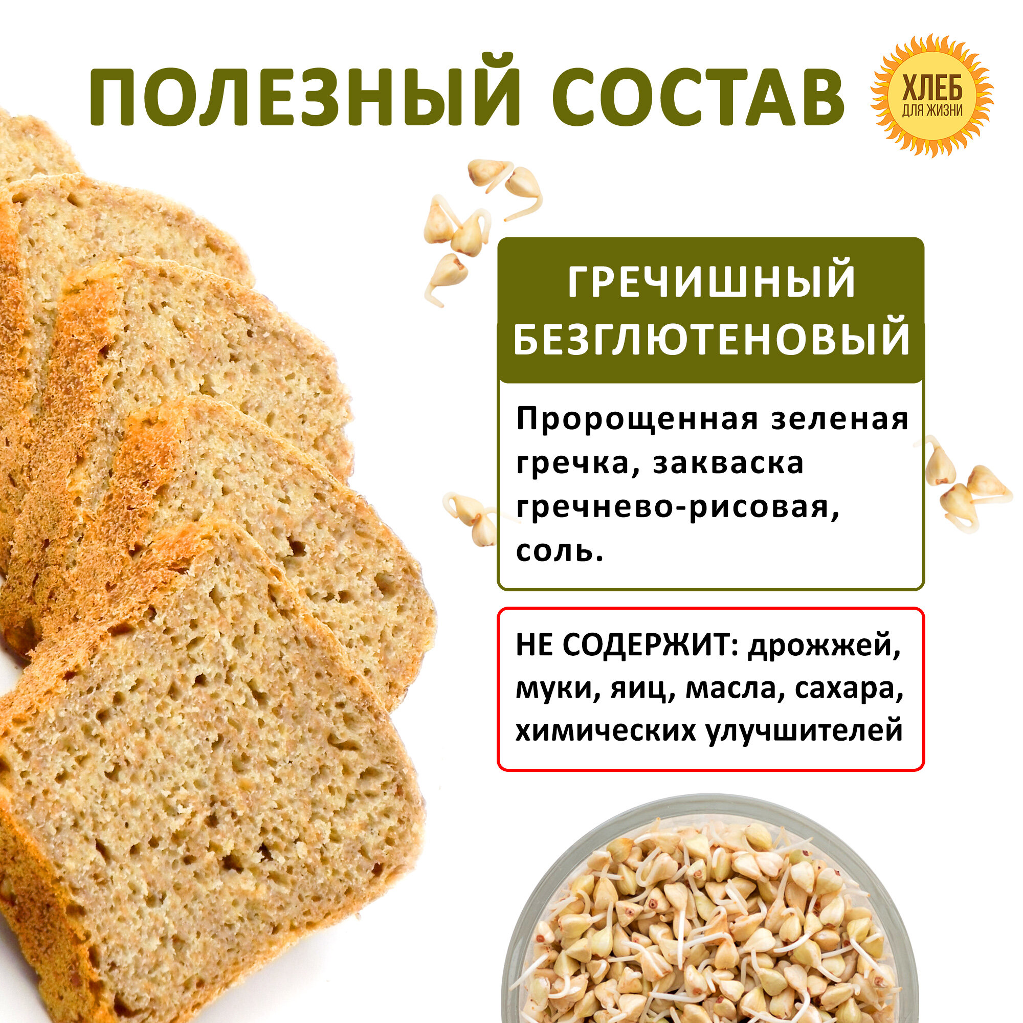 (2х400гр ) Хлеб Гречишный безглютеновый, цельнозерновой, бездрожжевой на закваске - Хлеб для Жизни информация: