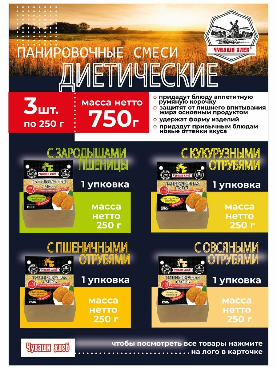 Смесь панировочная из цельнозерновой муки с зародышами пшеницы универсальная Чуваши Хлеб 750 гр информация: