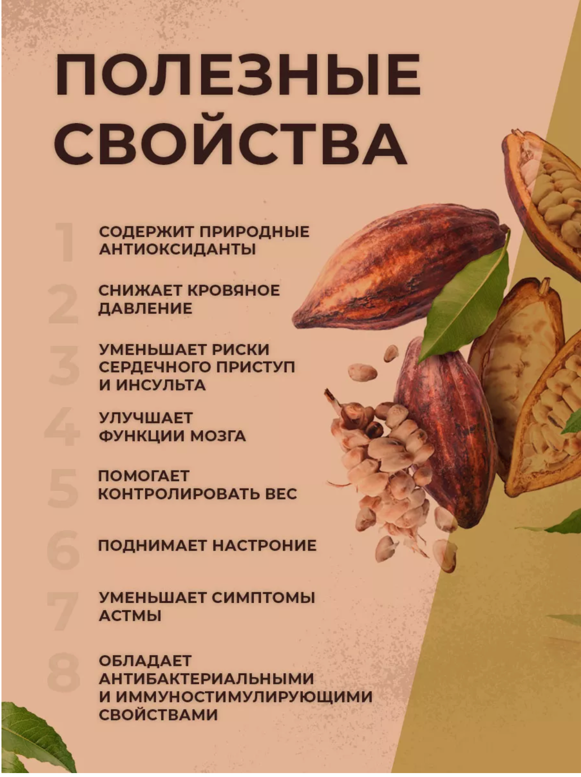 | Способ приготовления | Рекомендуемая дозировка: одна чайная ложка какао, одна чайная ложка сахара. Добавить 100 мл горячего молока. Перемешать |