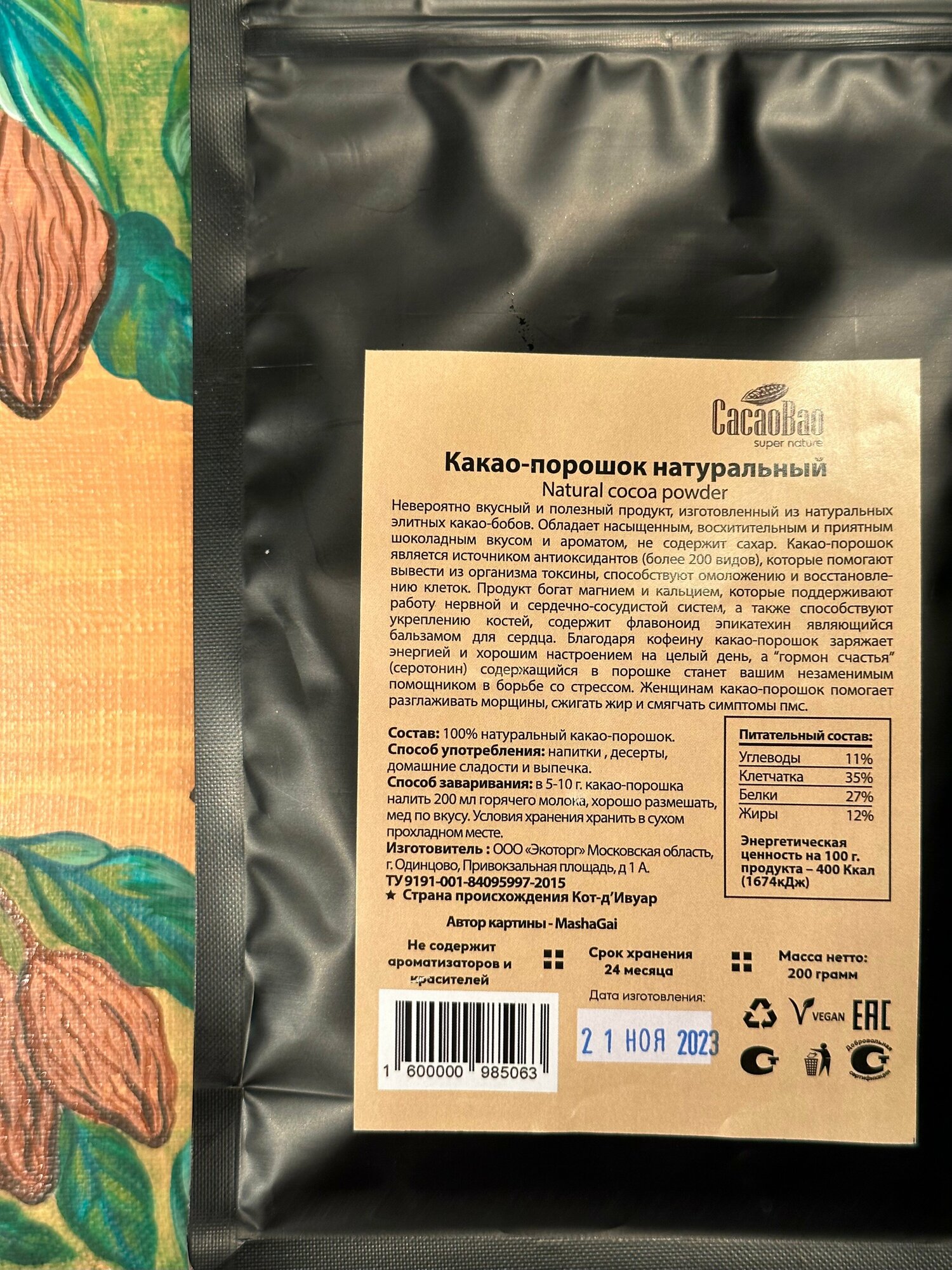 Какао-порошок натуральный КакаоБао (CacaoBao) КОТ-Д'ИВУАР, 6 х 200 гр информация: