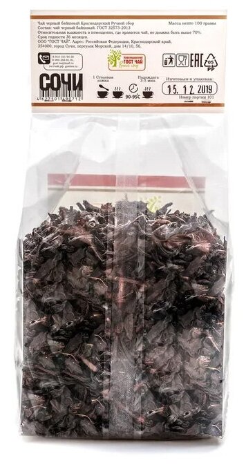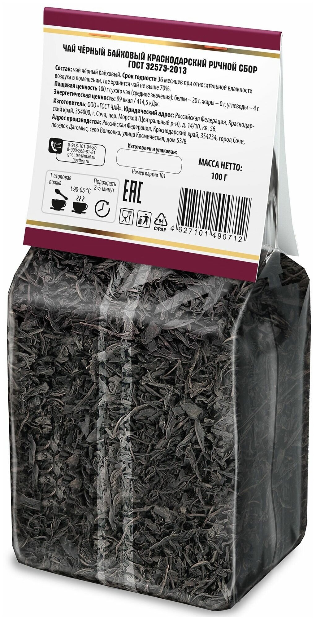 Чай черный краснодарский ГОСТ ЧАЙ ручной сбор листовой, 100г