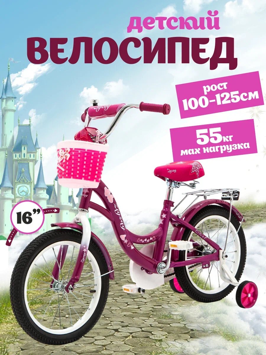 Отзывы на Велосипед детский двухколесный 16" ZIGZAG GIRL малиновый для детей от 4 до 6 лет на рост 100-125см (требует финальной сборки)