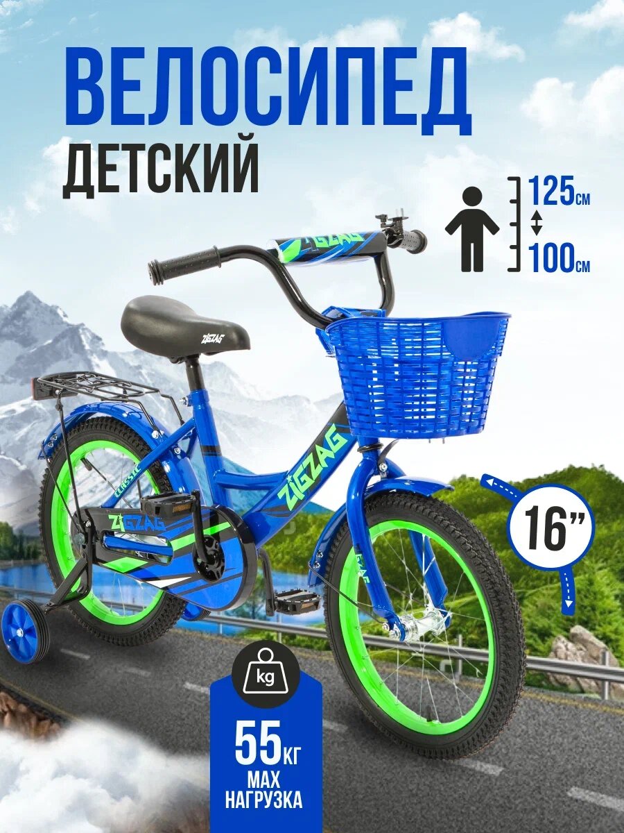 Велосипед детский двухколесный 16" ZIGZAG CLASSIC синий для детей от 4 до 6 лет на рост 100-125см (требует финальной сборки) информация: