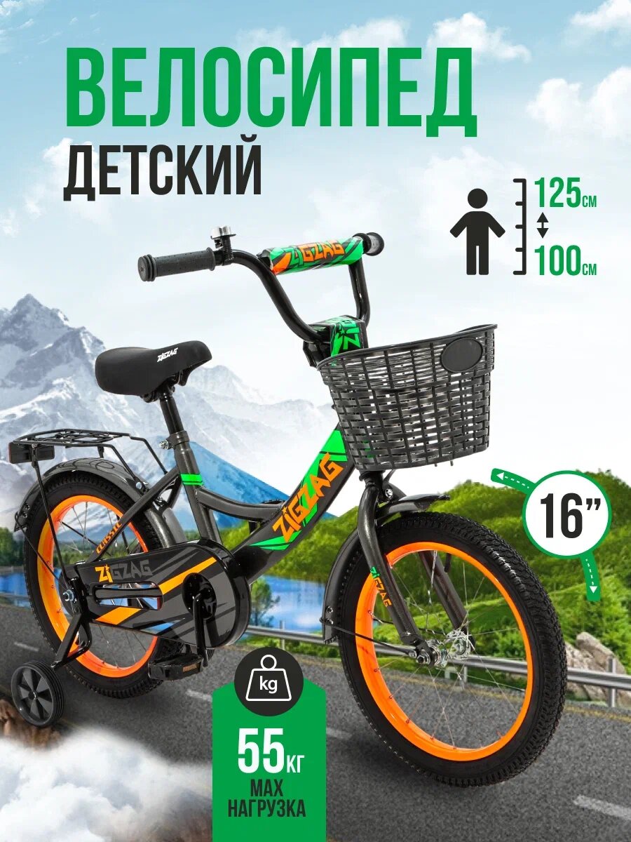 Отзывы на Детский двухколесный велосипед 16" ZIGZAG CLASSIC серый для детей от 4 до 6 лет на рост 100-125см (Требует финальной сборки)