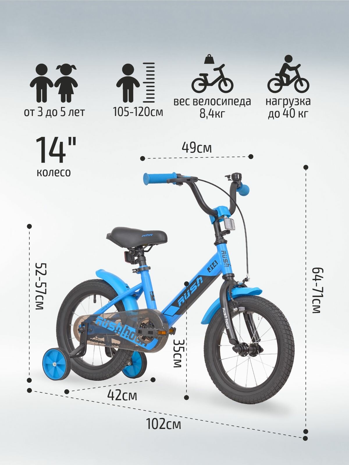 Детский велосипед Rush Hour 14" J14 синий информация: