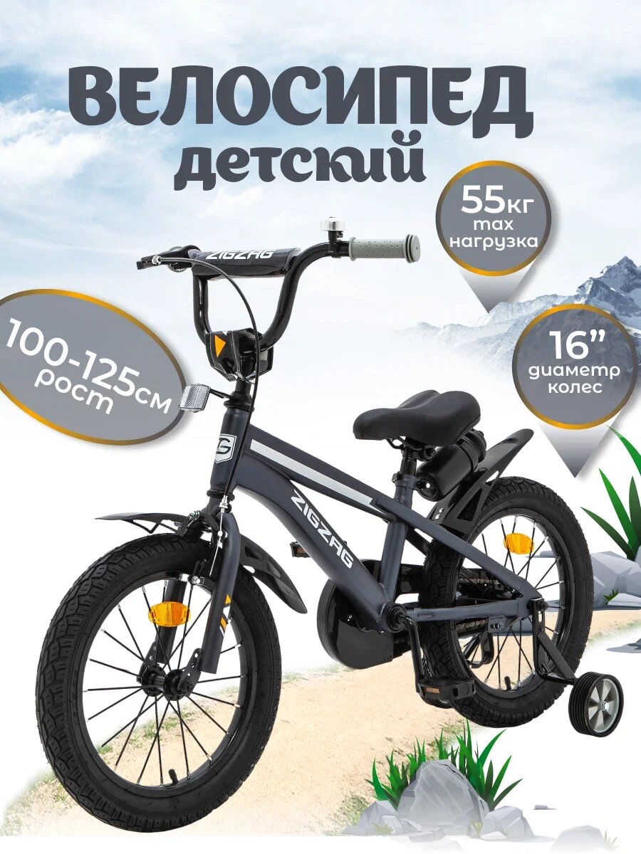 Отзывы на Велосипед детский 16" ZIGZAG CROSS черный для мальчиков и девочек от 4 до 6 лет на рост 100-125см 2024