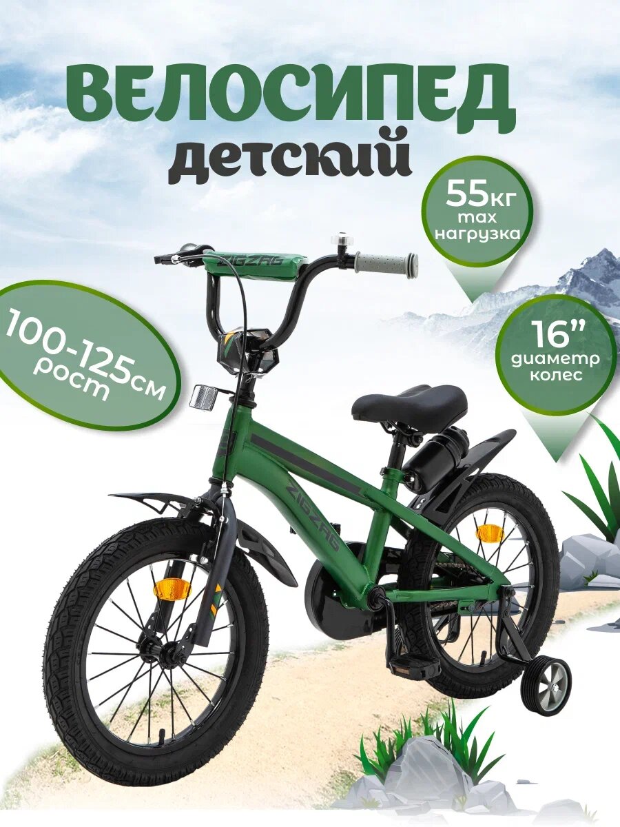 Велосипед детский 16" ZIGZAG CROSS зеленый для мальчиков и девочек от 4 до 6 лет на рост 100-125см 2024 информация: