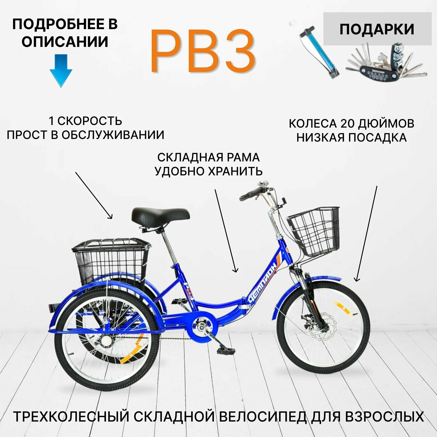 Отзывы на Трехколесный велосипед для взрослых РВЗ "Чемпион" (складной), 20", синий