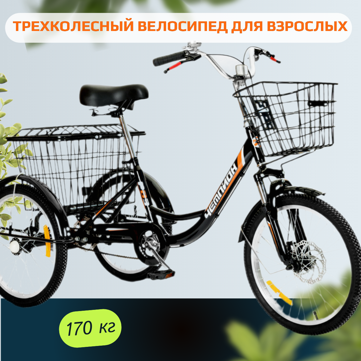 Трехколесный велосипед для взрослых РВЗ "Чемпион", 20", черный информация: