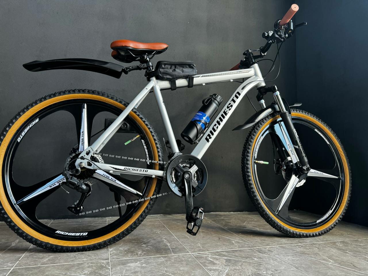 Отзывы на Велосипед горный RICHIESTO 26" колёса Литые диски ТРИ луча Взрослый Подростковый Спортивный, серый с коричневым