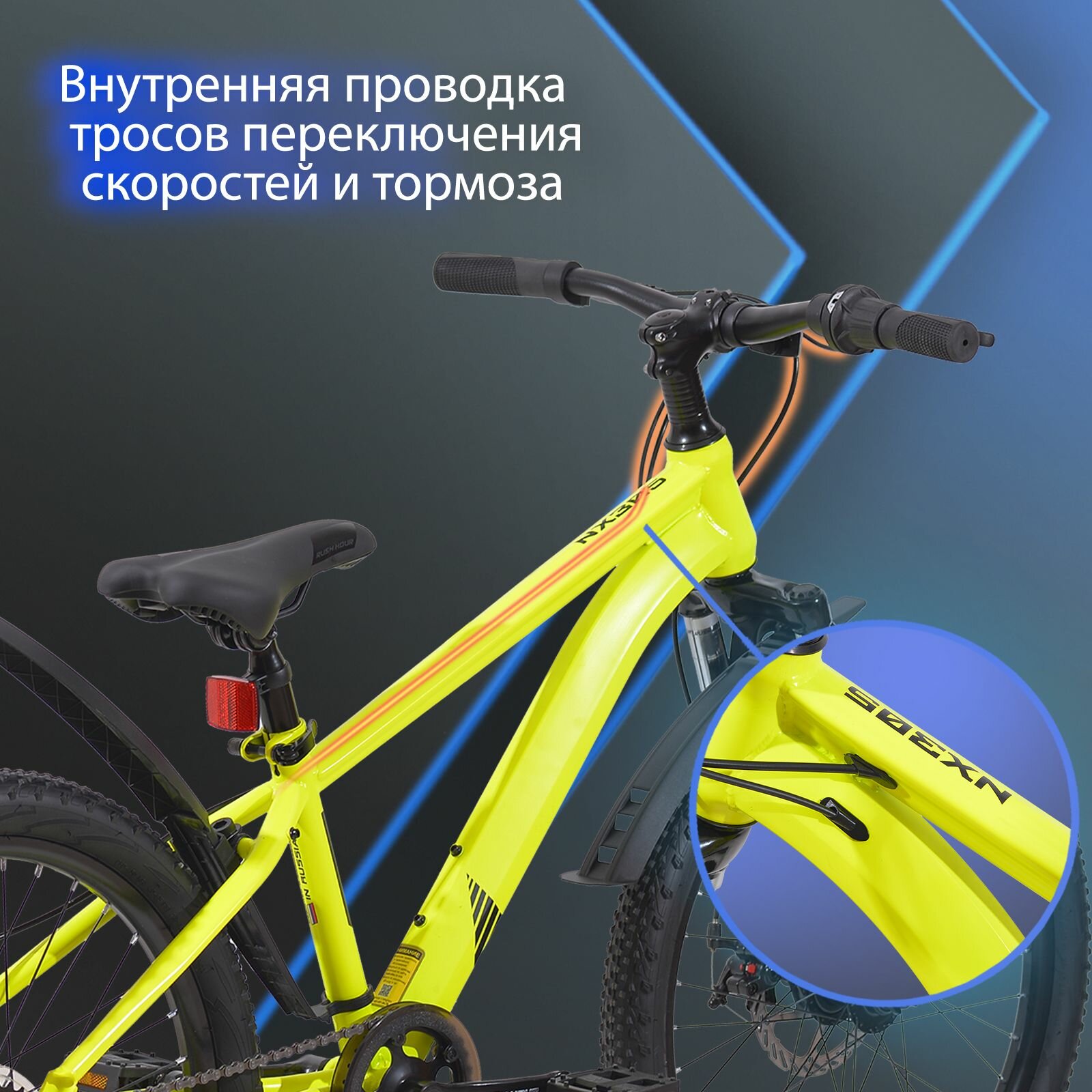 10 цен на Велосипед детский горный дисковый 22" рост 125-140см 6 скоростей желтый рама 12" велик 9 лет 7 лет 8 лет переключатель SHIMANO скоростной RUSH HOUR NX 305