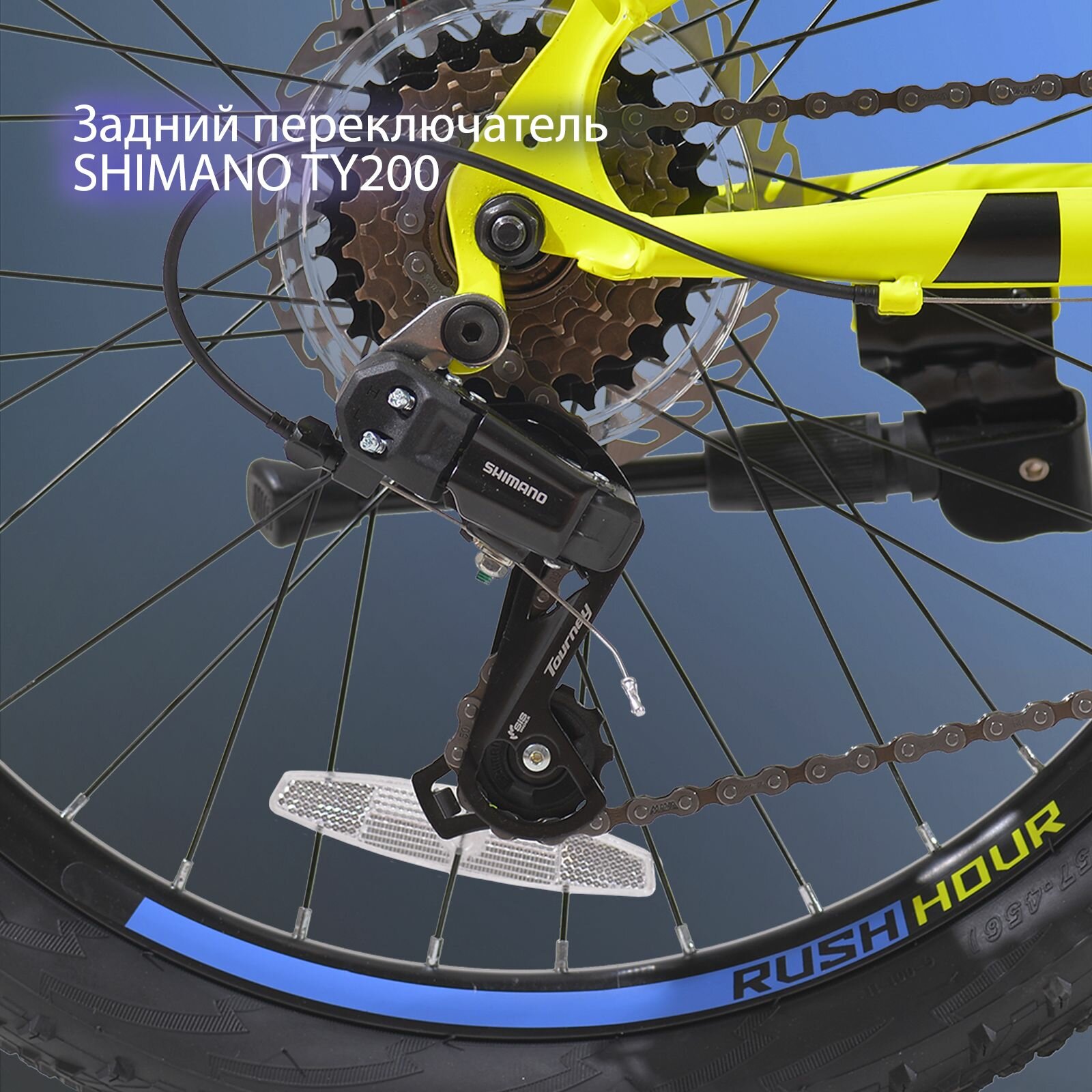 Отзывы на Велосипед детский горный дисковый 22" рост 125-140см 6 скоростей желтый рама 12" велик 9 лет 7 лет 8 лет переключатель SHIMANO скоростной RUSH HOUR NX 305
