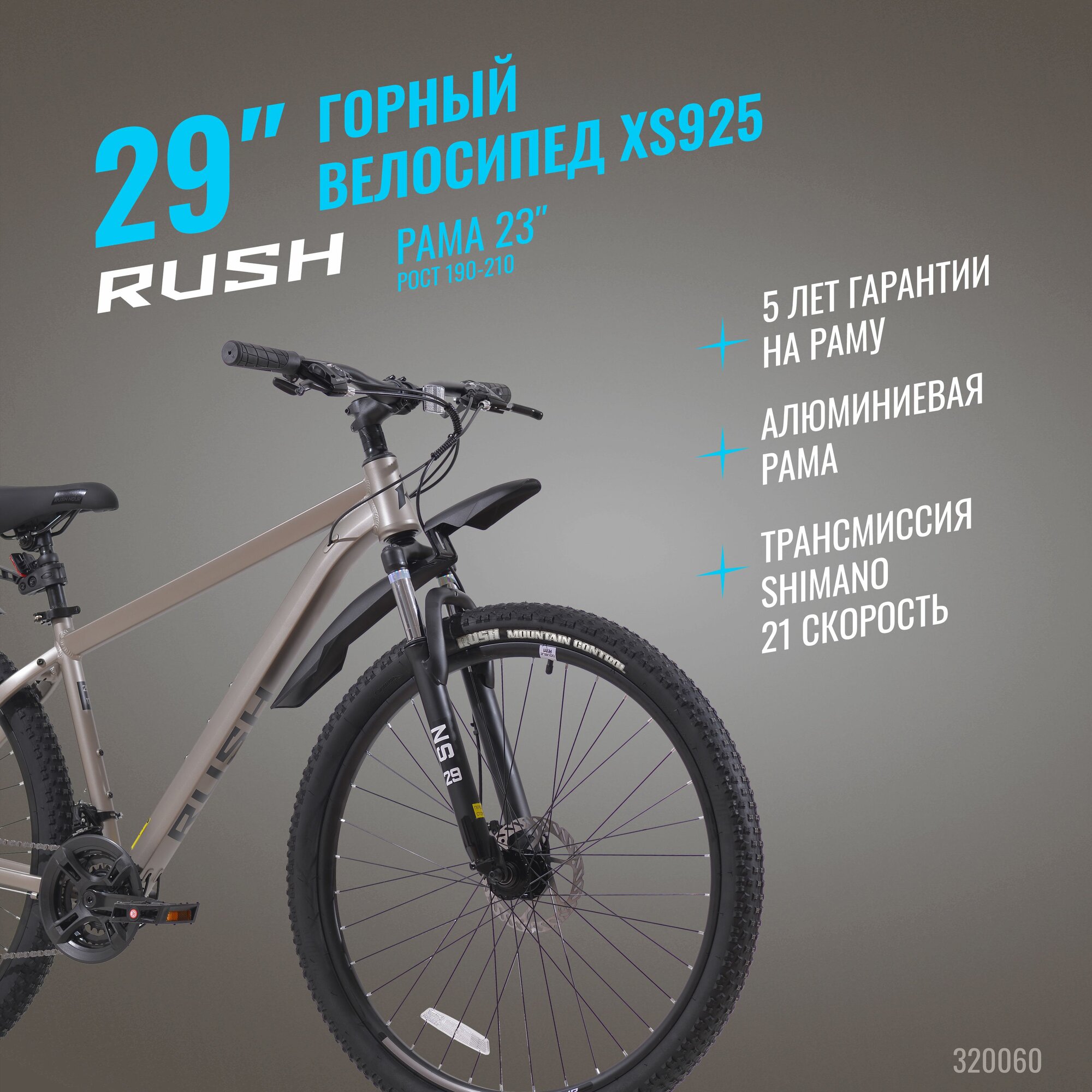 Отзывы на Велосипед алюминиевый взрослый горный 29" RUSH HOUR XS 925 21 скорость серый рама 23" рост 190-210 см. скоростной для мужчин спортивный с амортизацией найнер переключатель SHIMANO дисковый